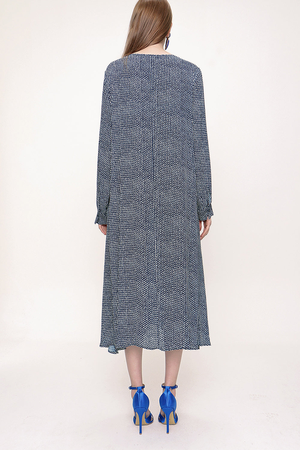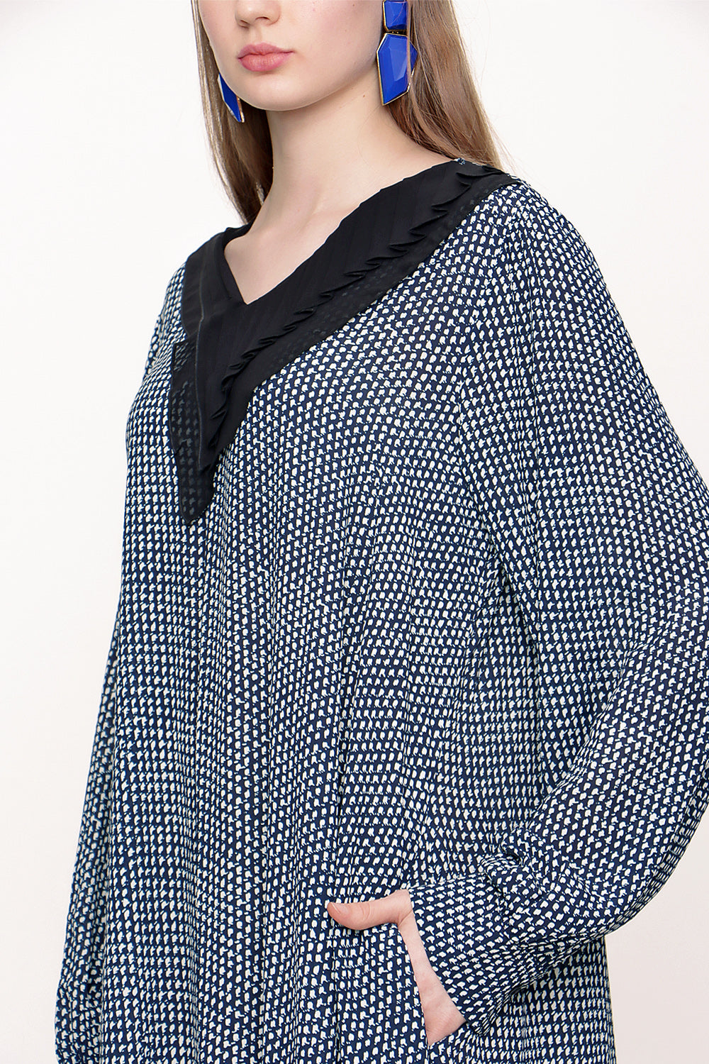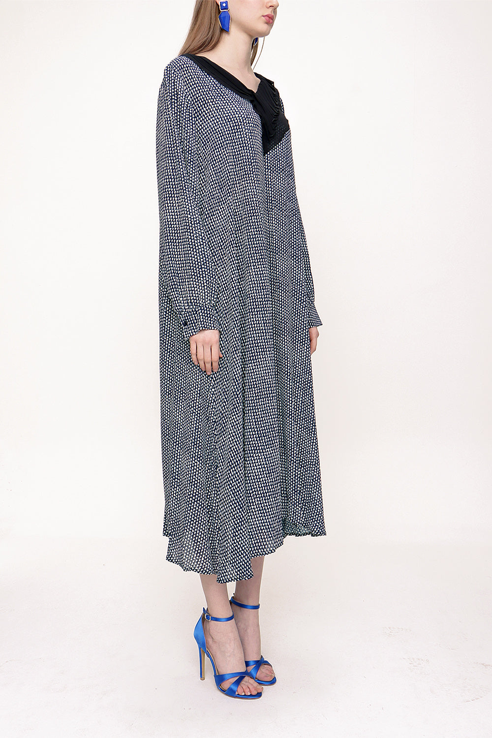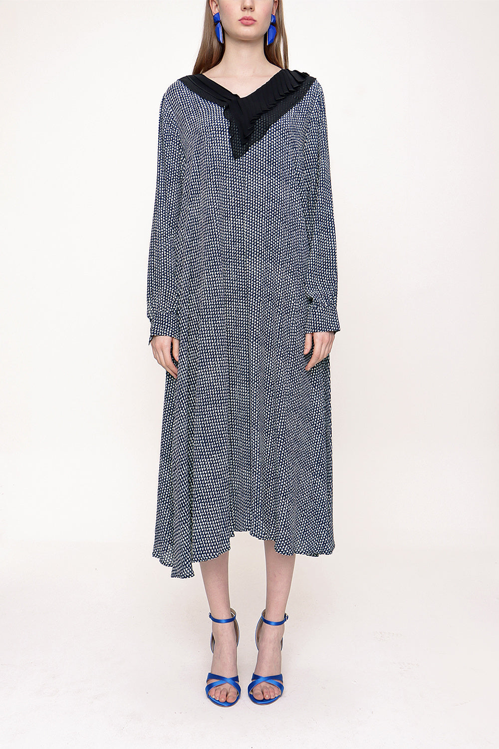 Lacivert Ekru Yakası piliseli bol kesim elbise 93720