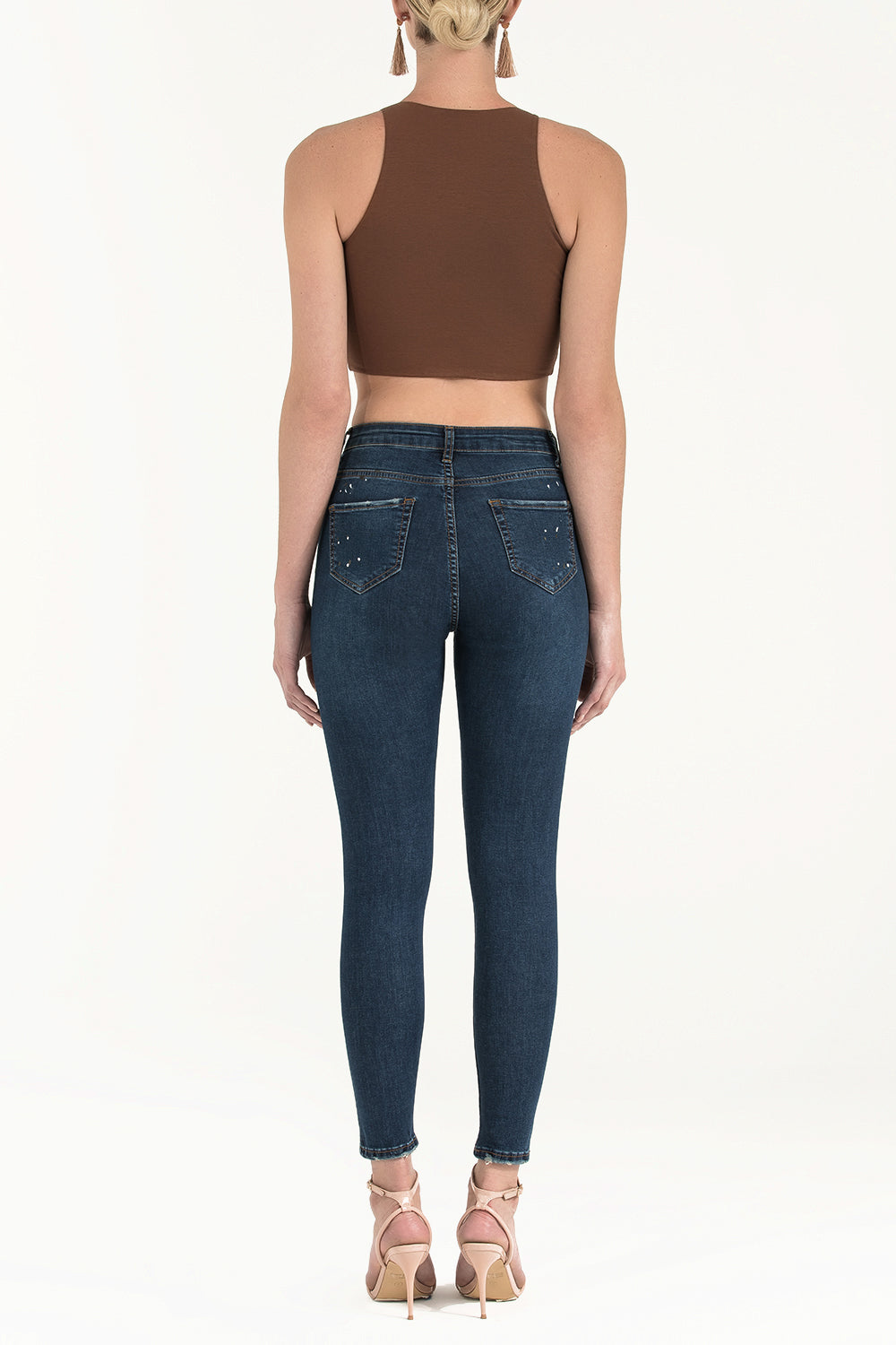 Lacivert İşlemeli skinny fit jean pantolon 41284