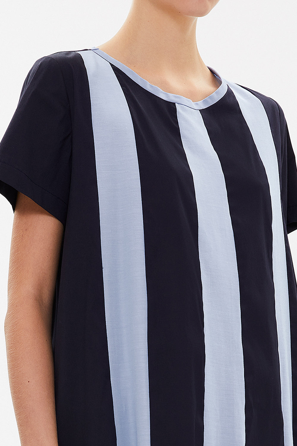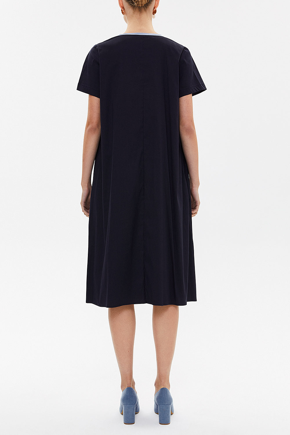 Lacivert Kontrast renkli bol kesim midi elbise 92809
