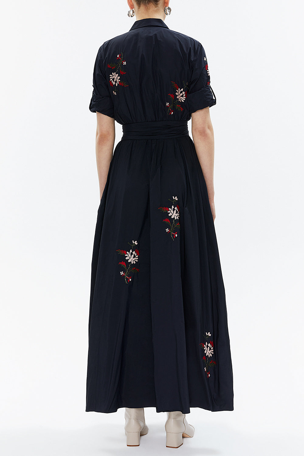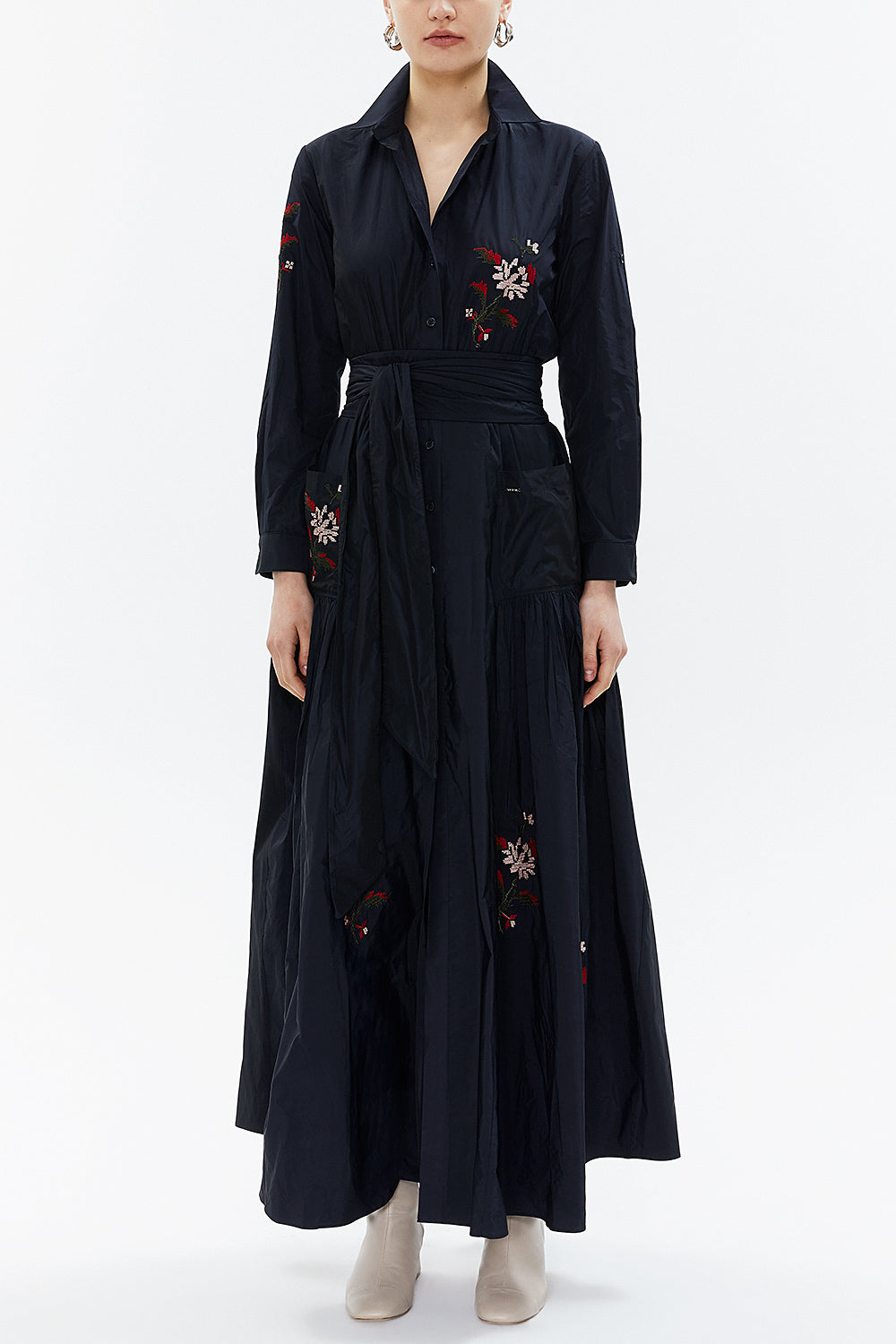 Lacivert Nakışlı tafta uzun gömlek elbise 94135