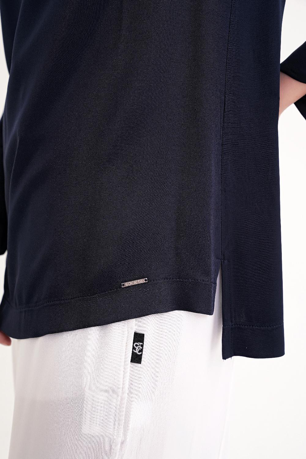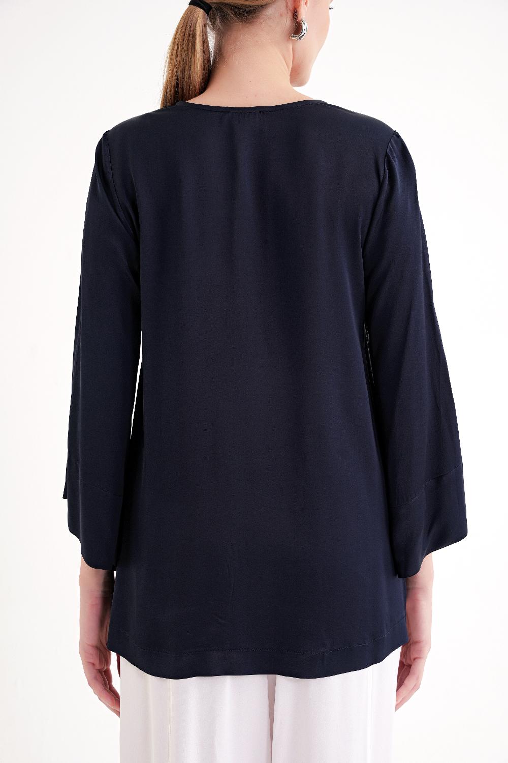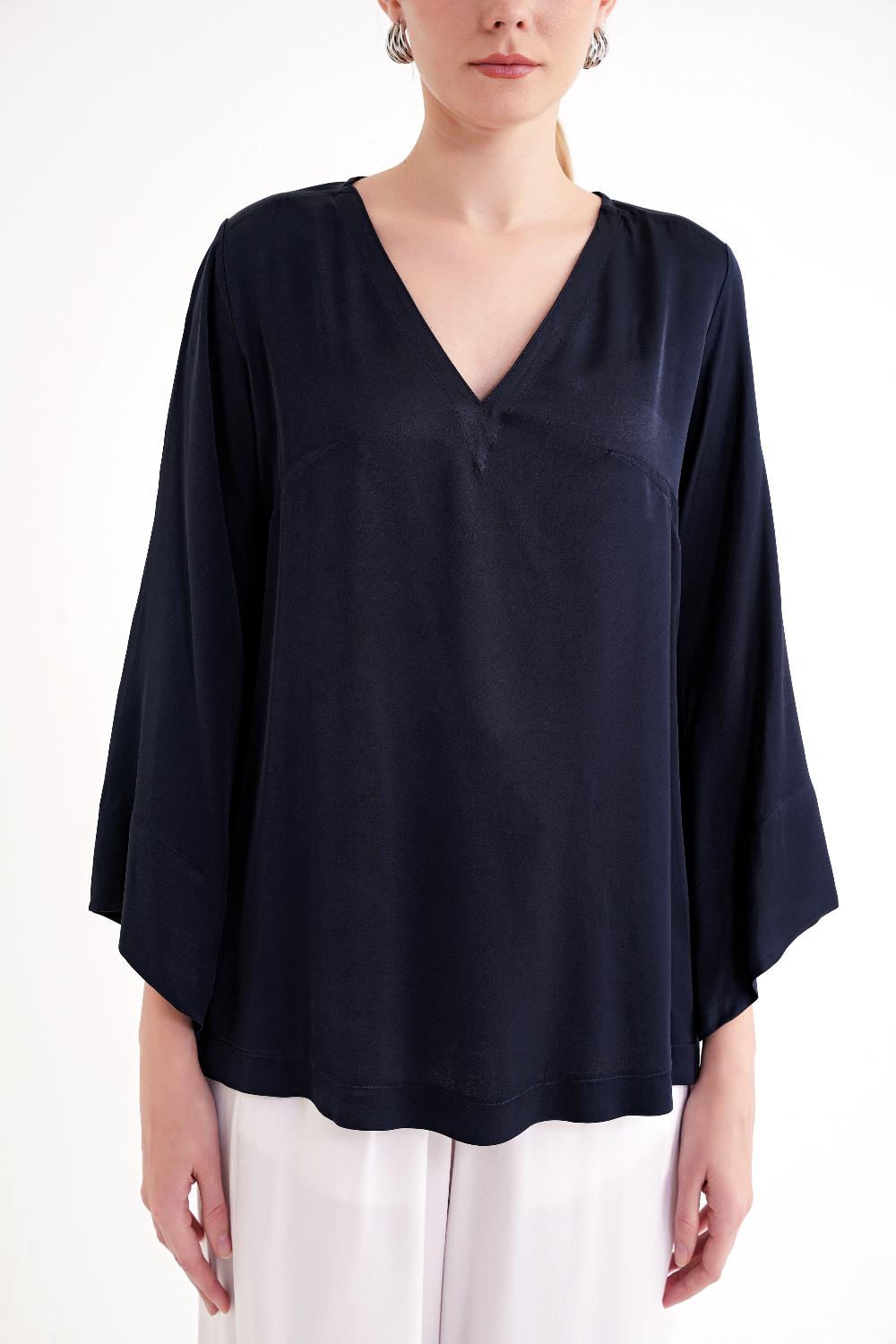 Lacivert V yaka saten bluz 19828