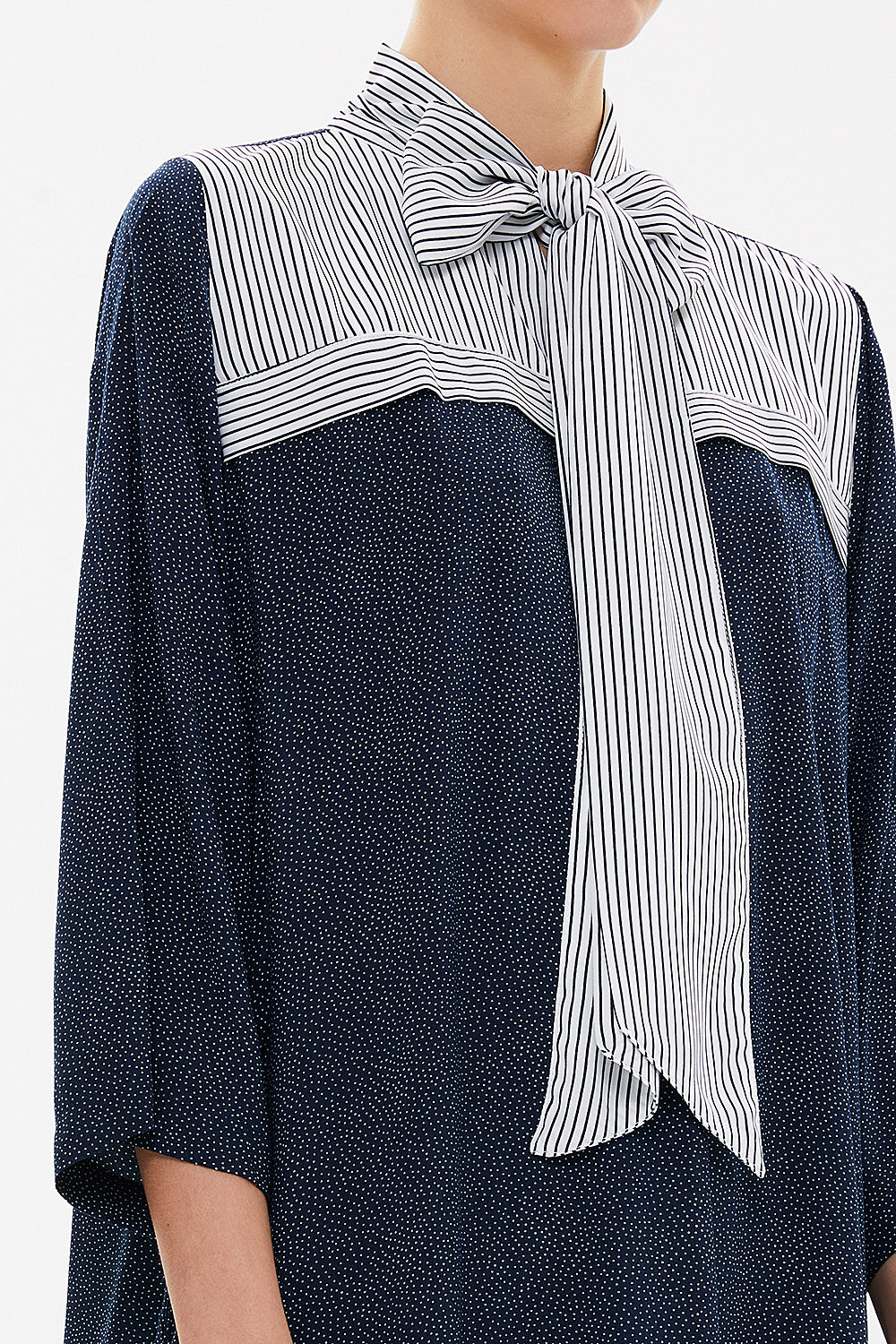 Lacivert Yakası bağcıklı bol kesim midi elbise 92816