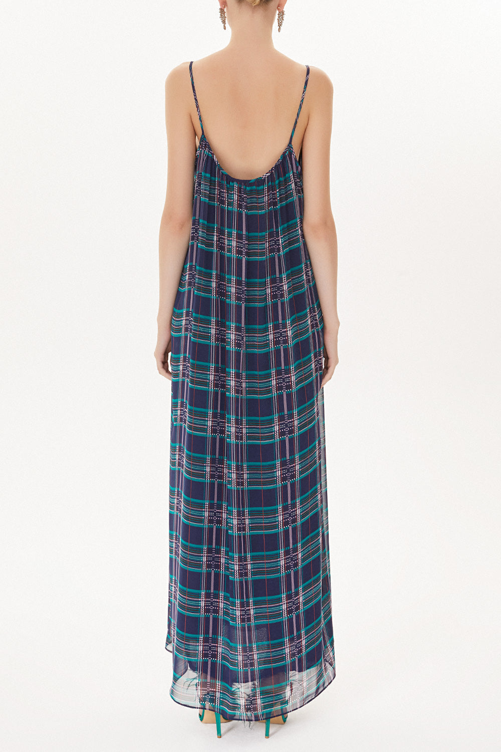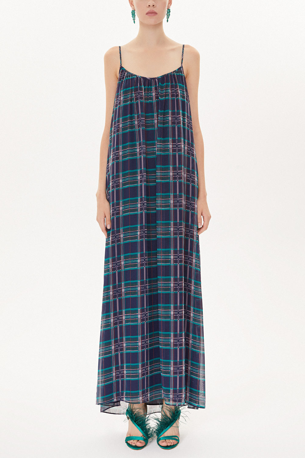 Lacivert Zemin Çizgili Askılı bol kesim elbise 93476
