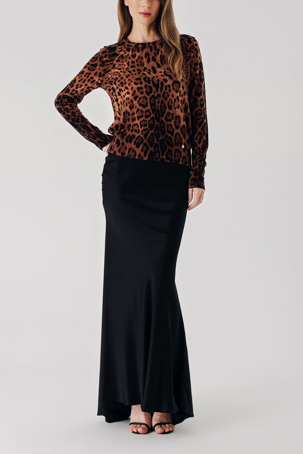 Leopar Bisiklet yaka leopar desenli yün triko kazak 28866
