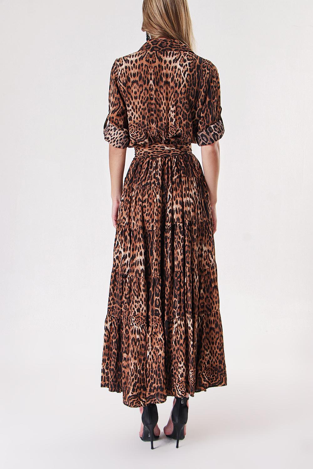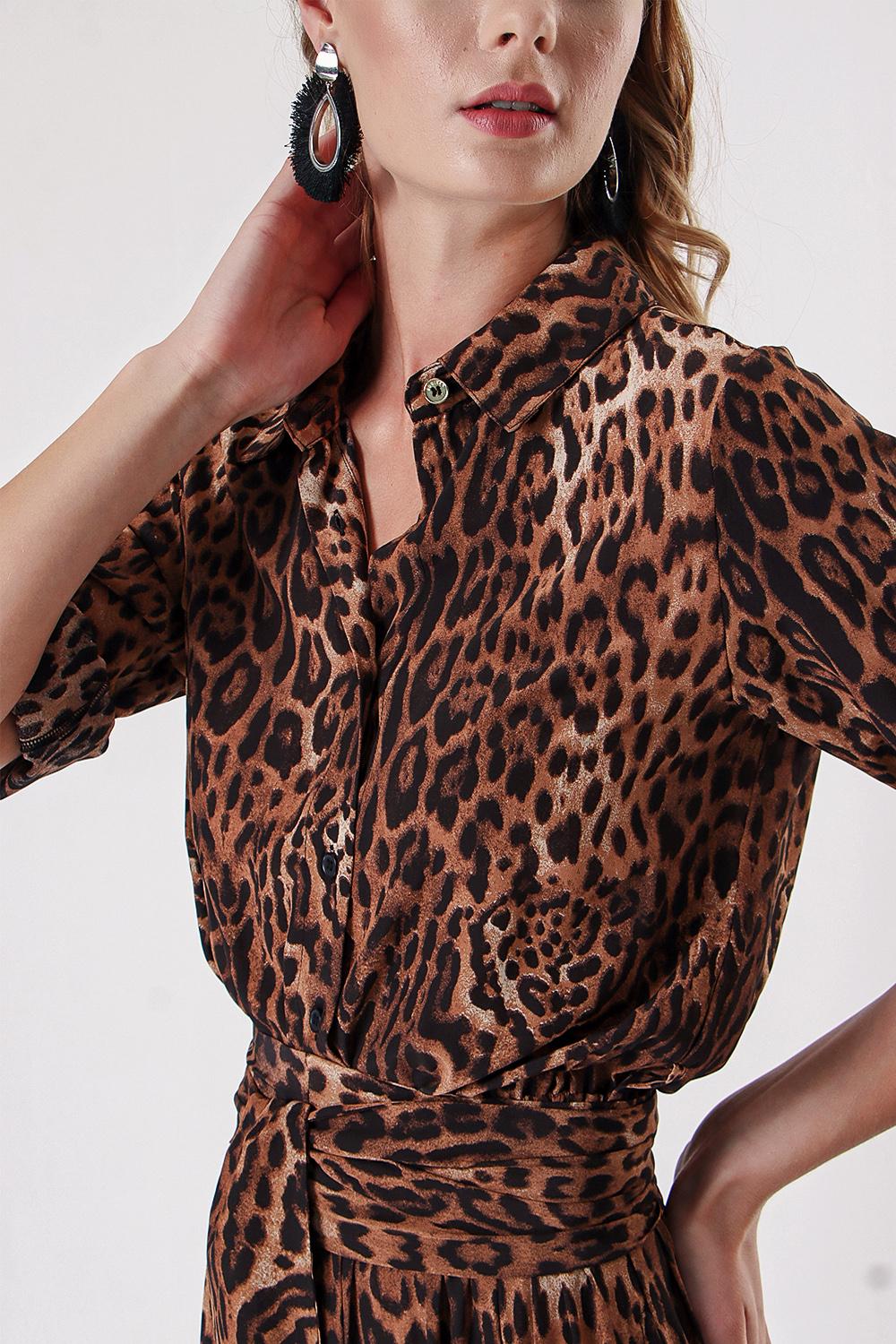 Leopar Büzgülü uzun gömlek elbise 94317
