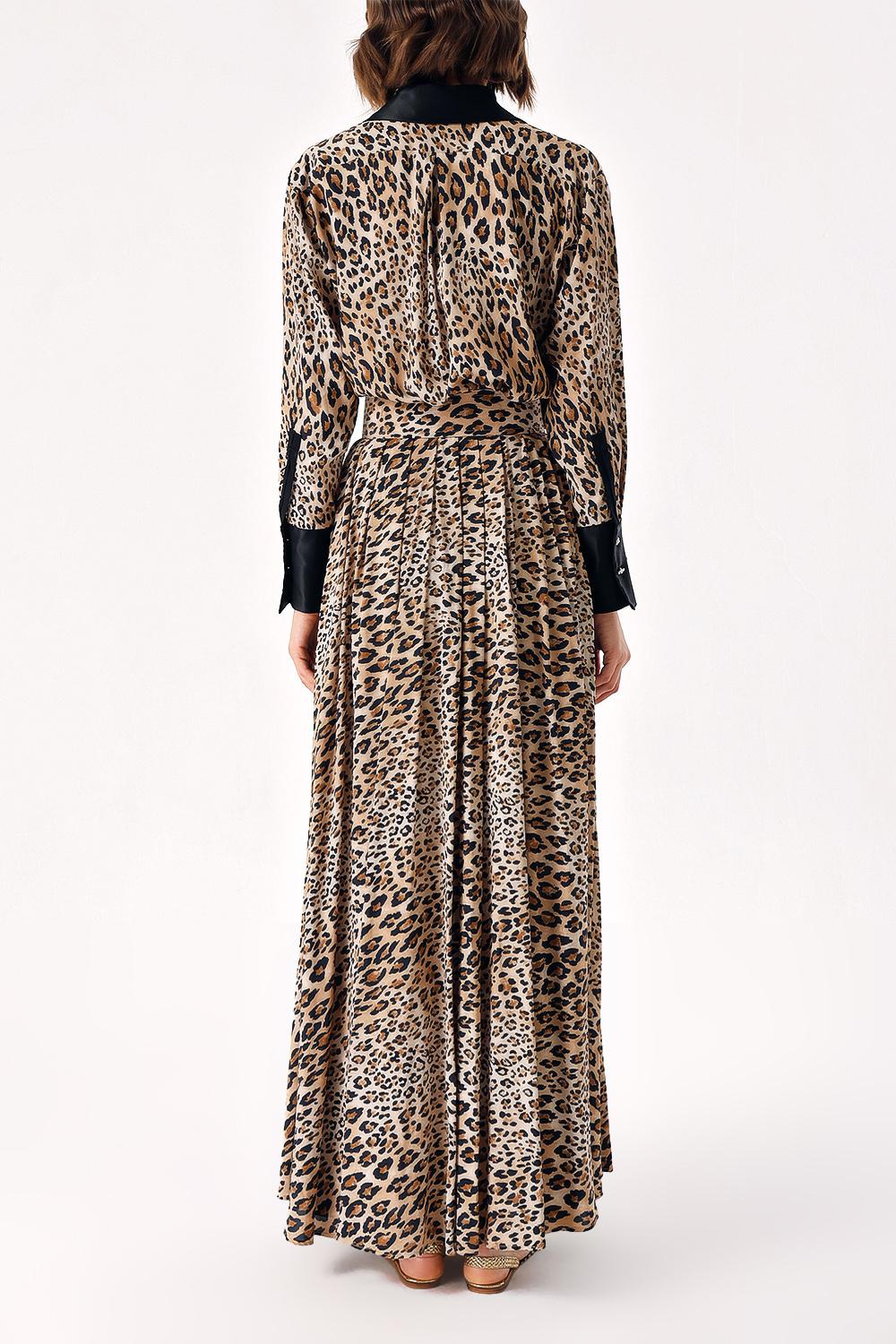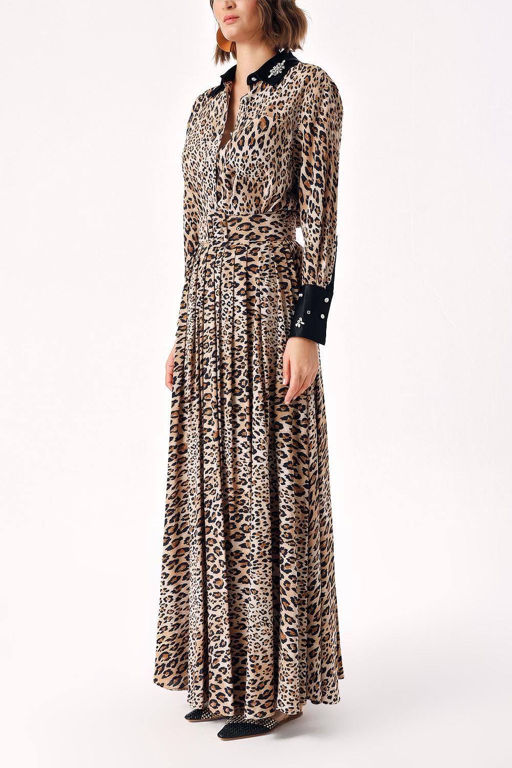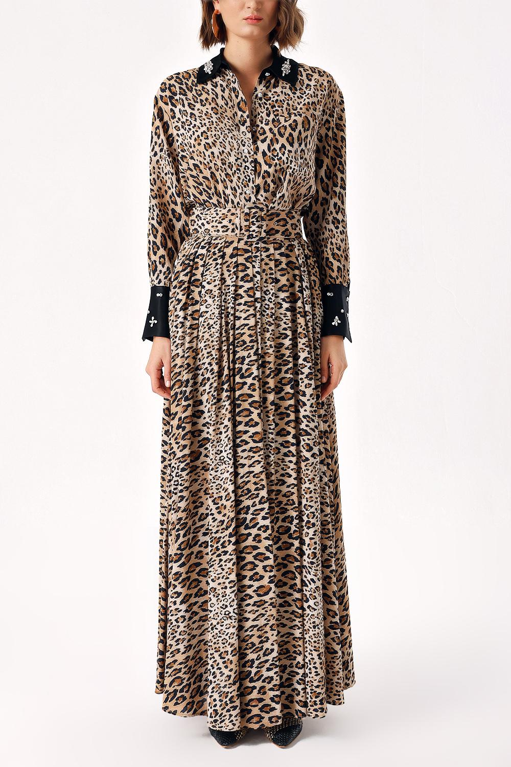 Leopar Taş işlemeli gömlek ve lastikli etek takım 12331