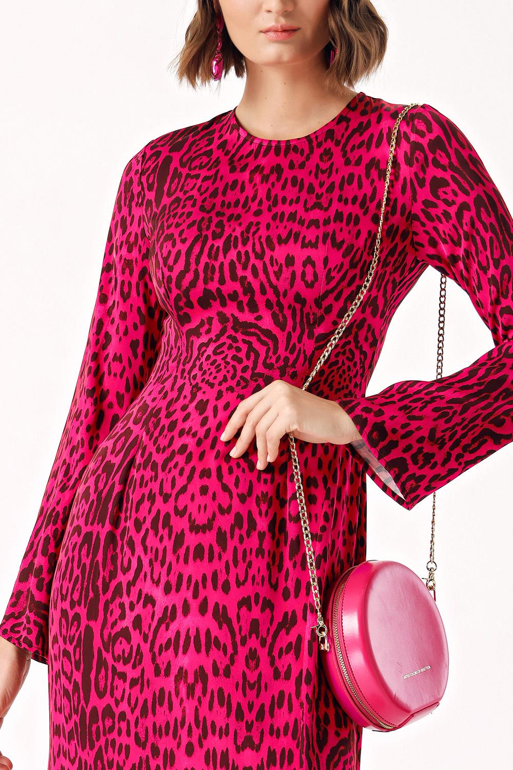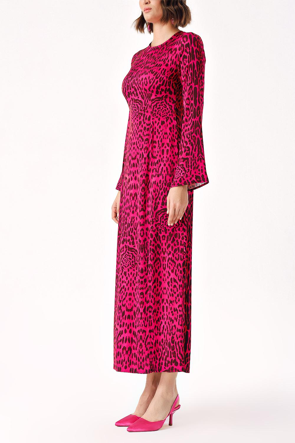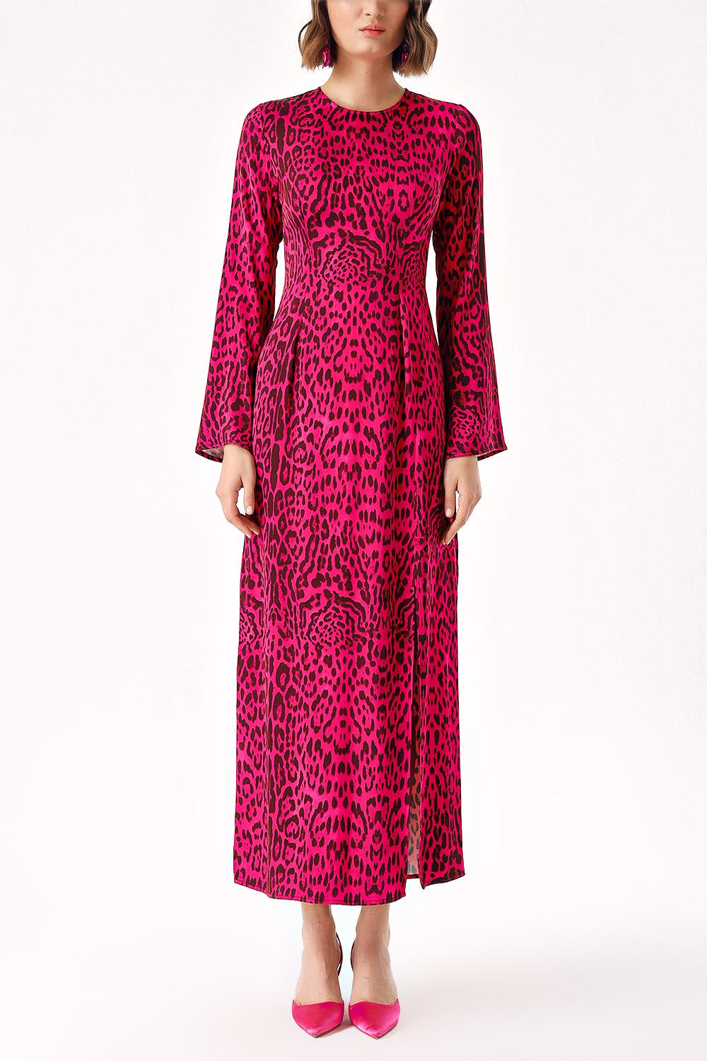 Leopard-Mor Uzun vücuda oturan yırtmaç detaylı elbise 94379