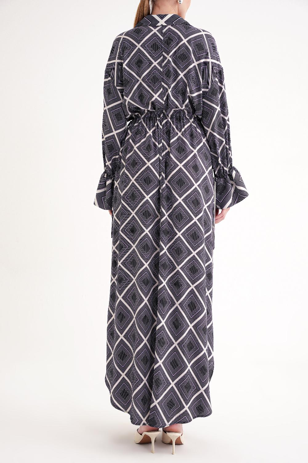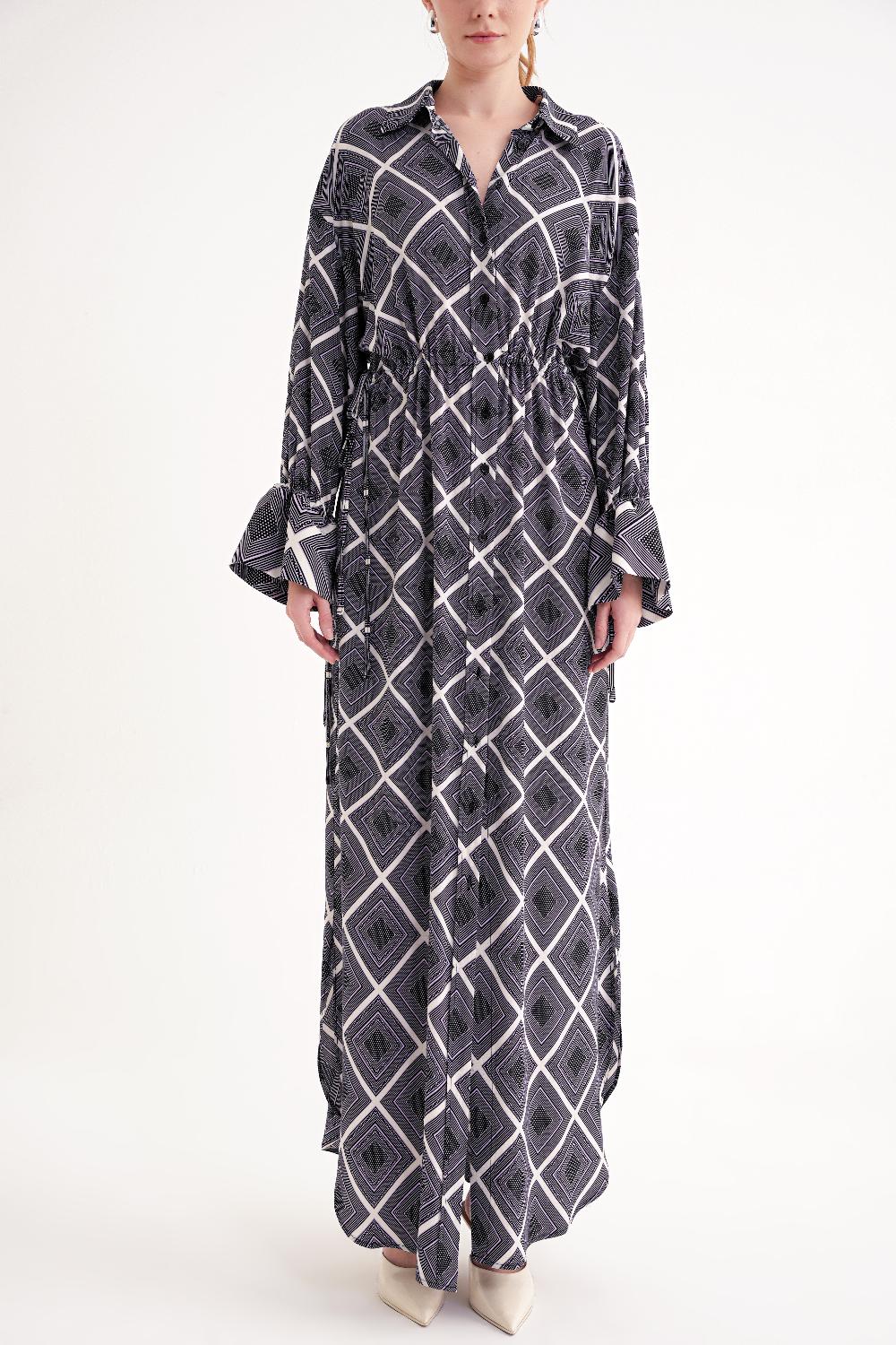 Ürün Özellikleri: Bol ve rahat kesimiyle tasarlanmış bu elbise, bel ve kol kısmını istediğiniz gibi ayarlayabilir. Günlük şıklık veya özel davetler için ideal bir parçadır.
