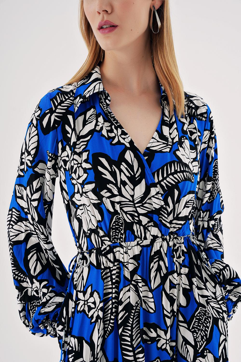 Mavi Anvelop kapama gömlek yaka uzun elbise 94485