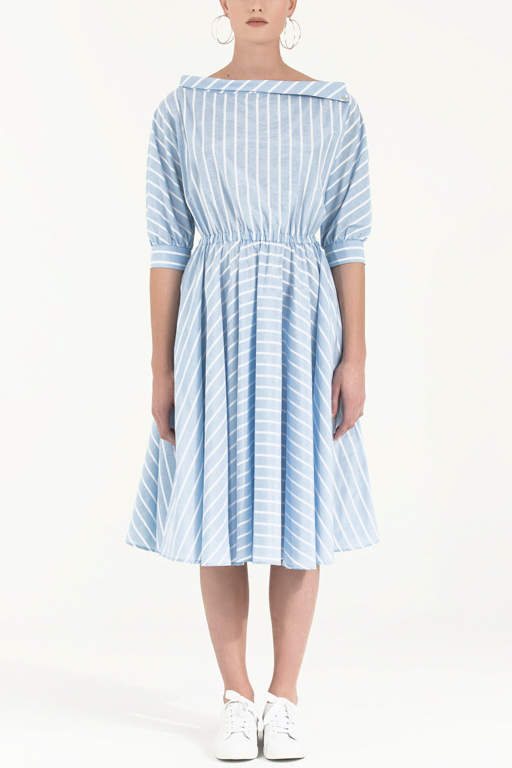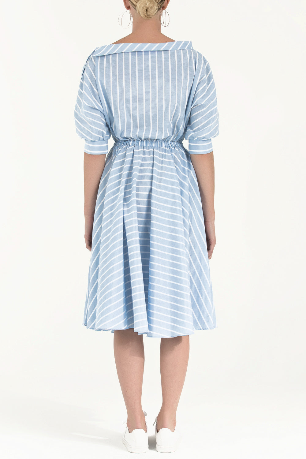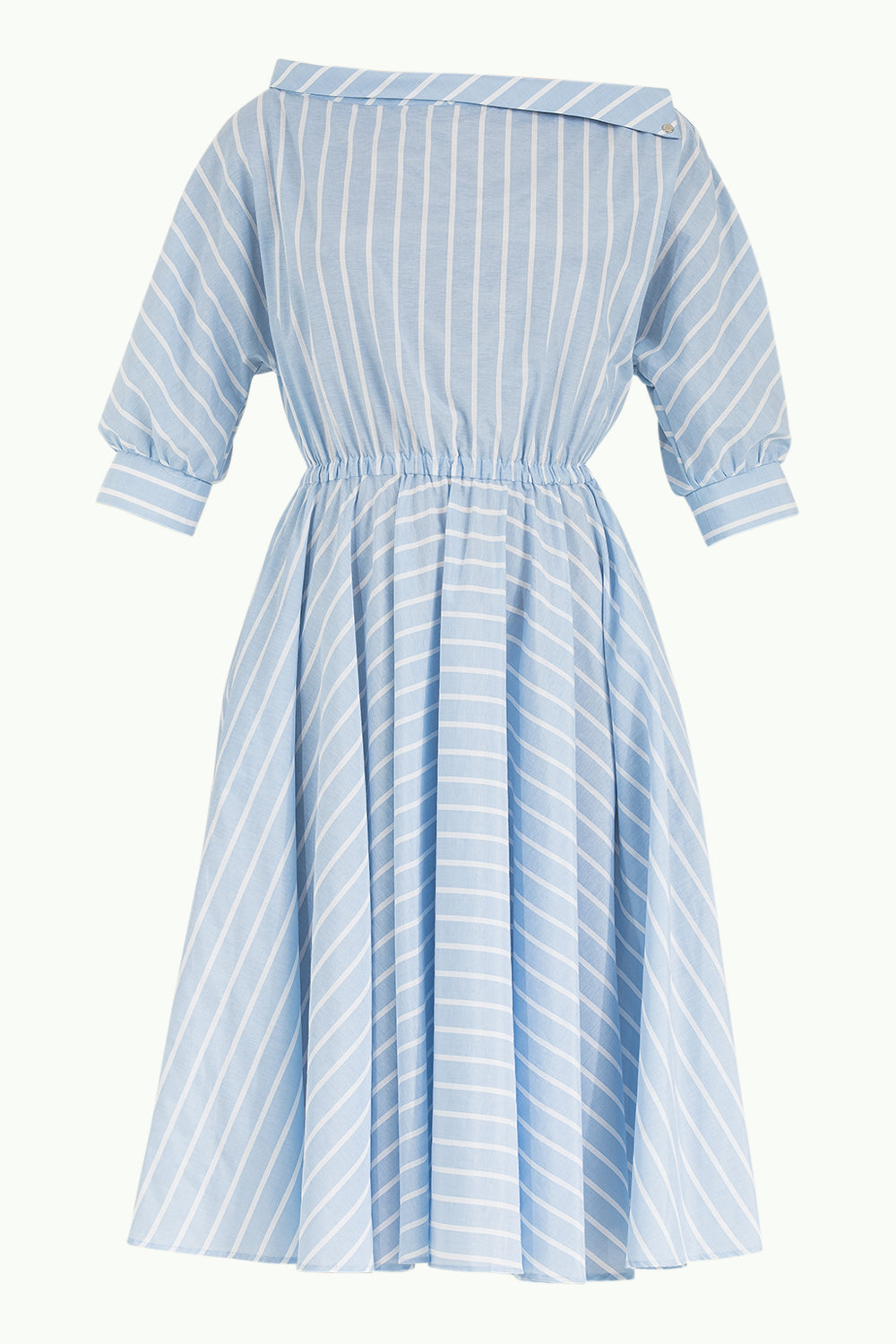 Mavi Asimetrik düşük omuz midi elbise 92271