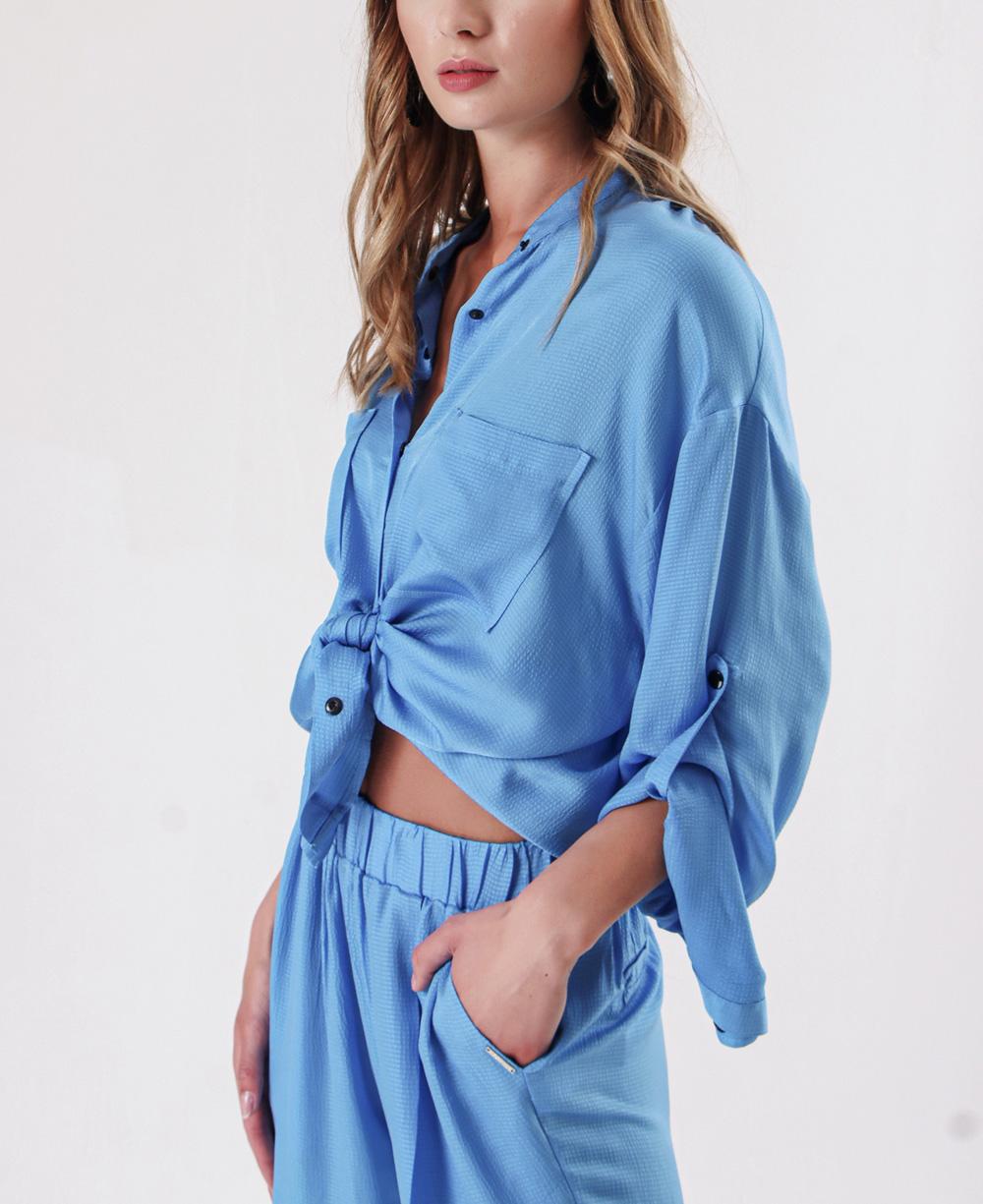 Mavi Bol kesim gömlek ve beli lastikli pantolunlu takım 12308