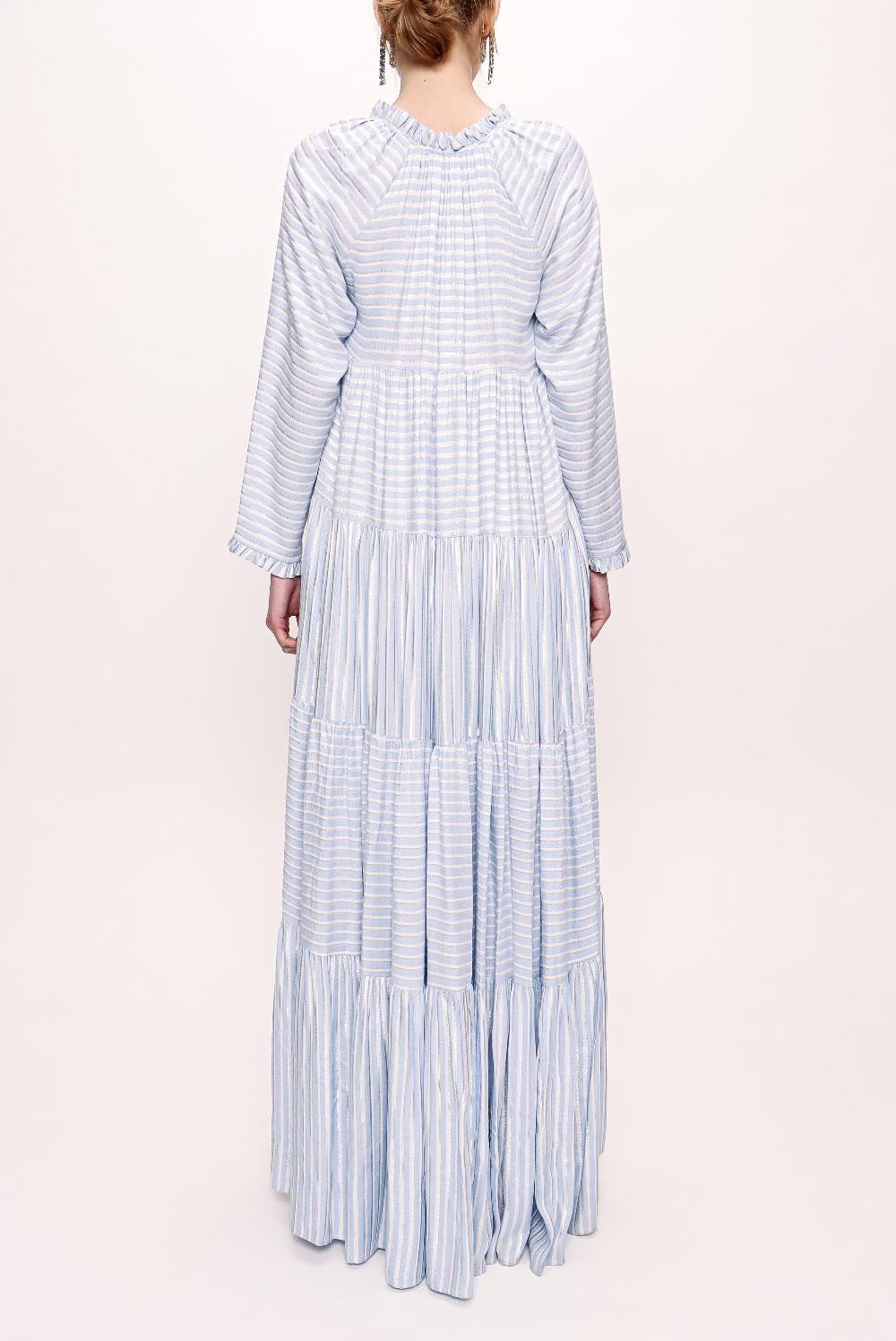 Mavi Büzgülü uzun elbise 92951