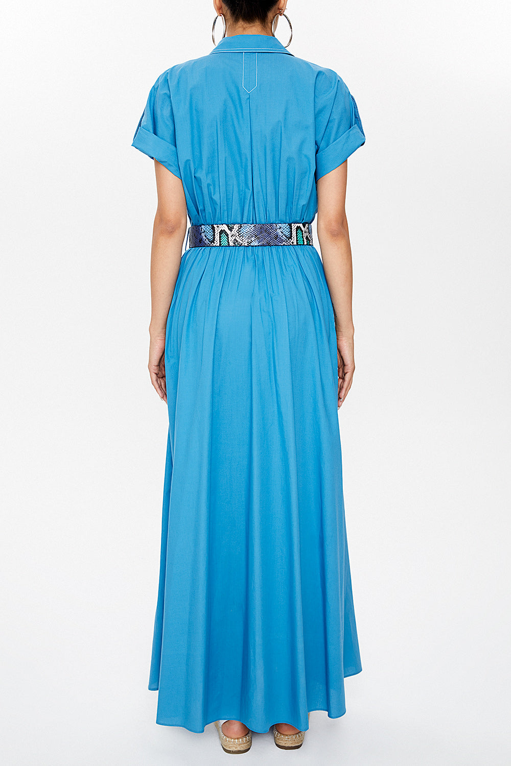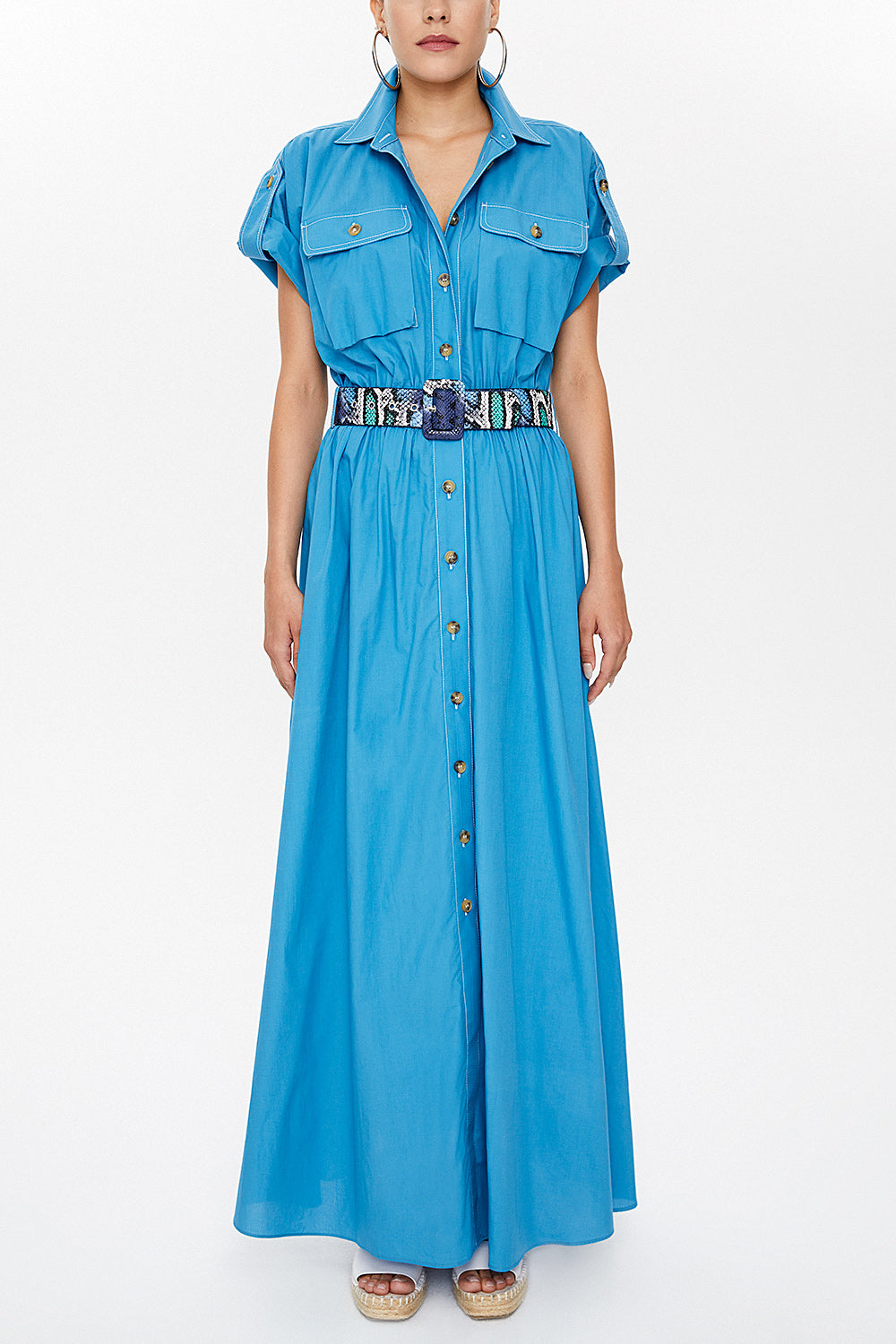 Mavi Cepli beli lastikli uzun elbise 93098