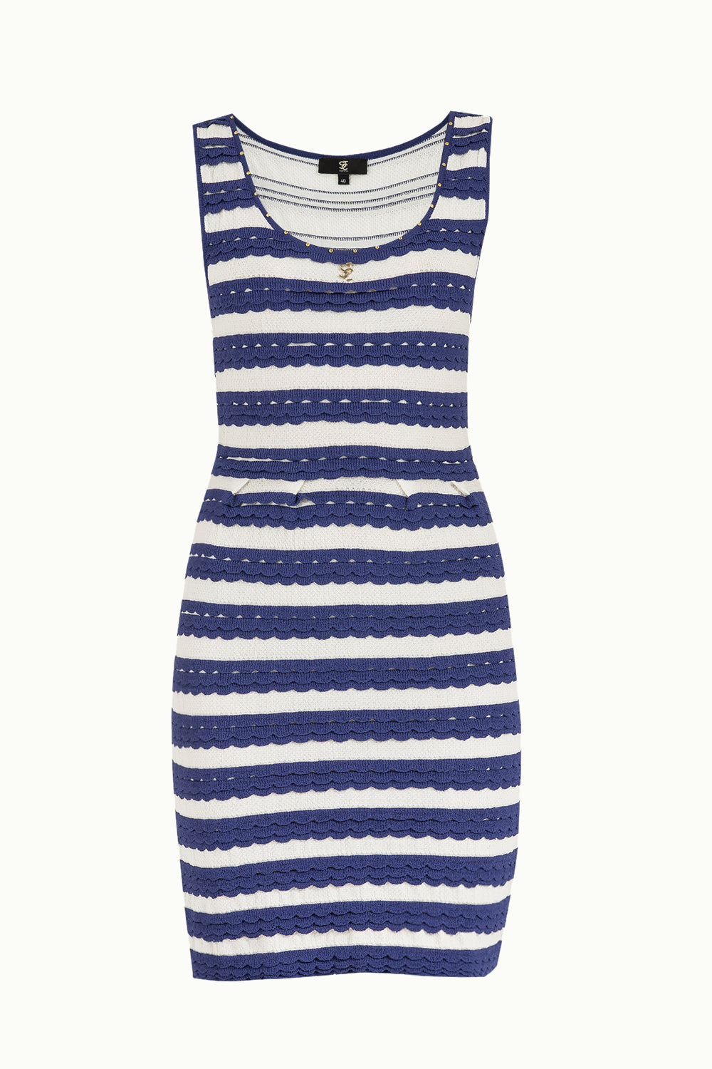 Mavi Desen örgülü yakası taşlı triko elbise 28061