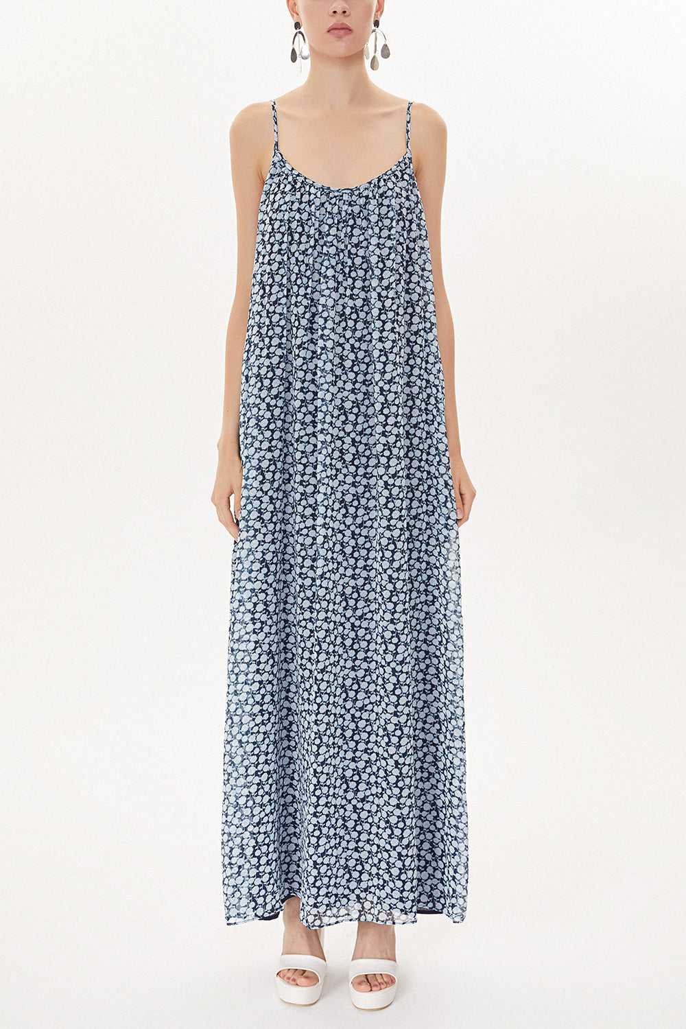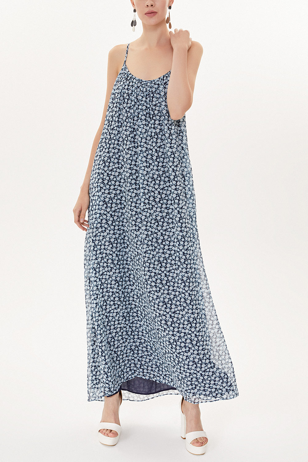 Mavi Desenli Askılı bol kesim elbise 93476