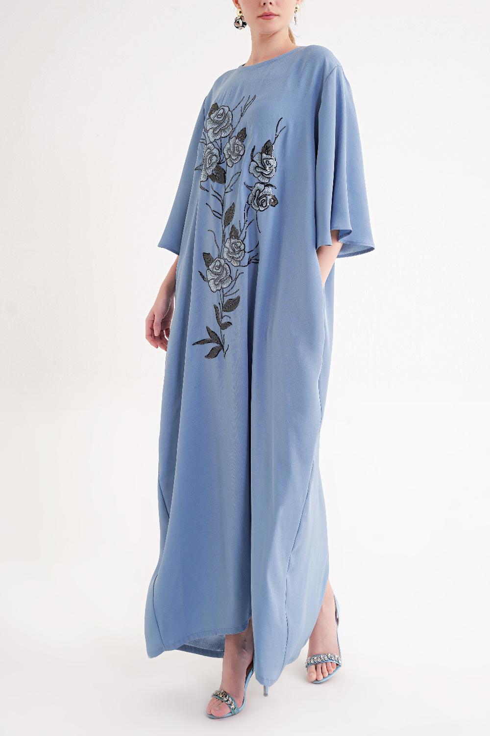Mavi Nakış detaylı bol kesim uzun elbise 94648
