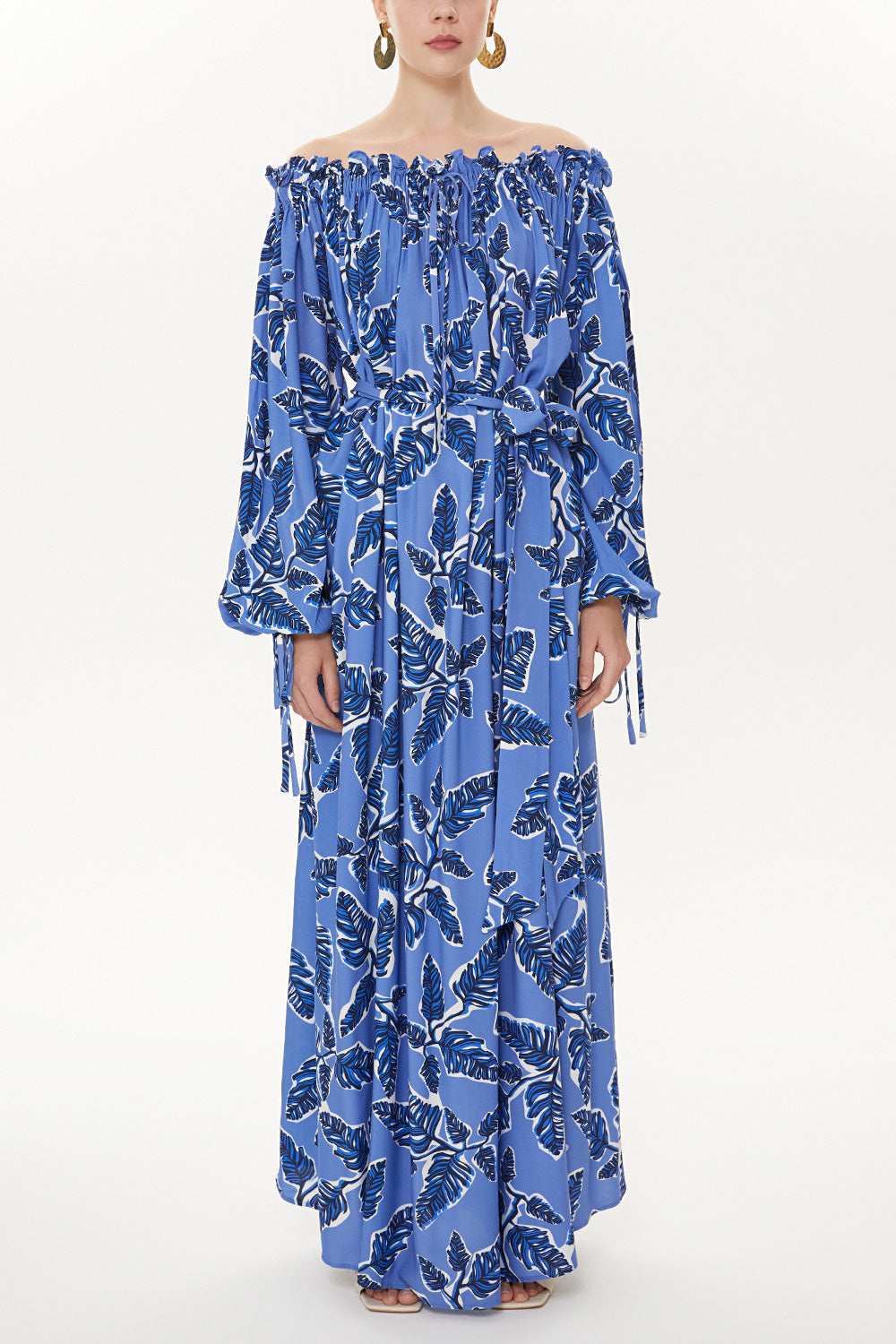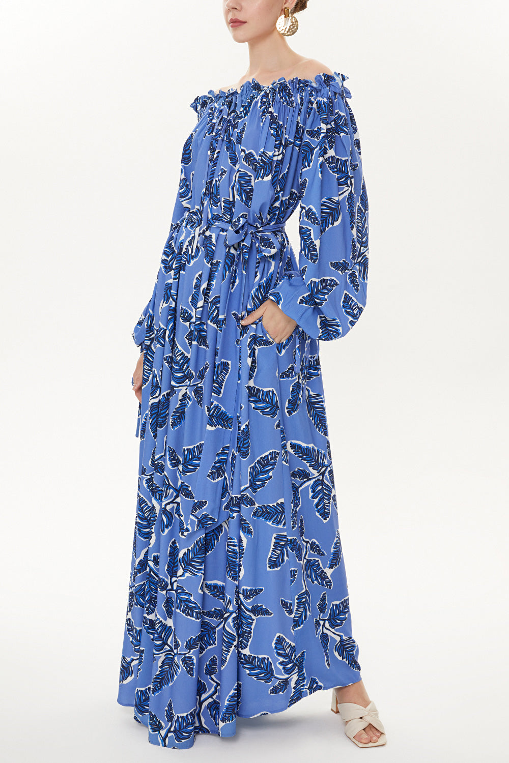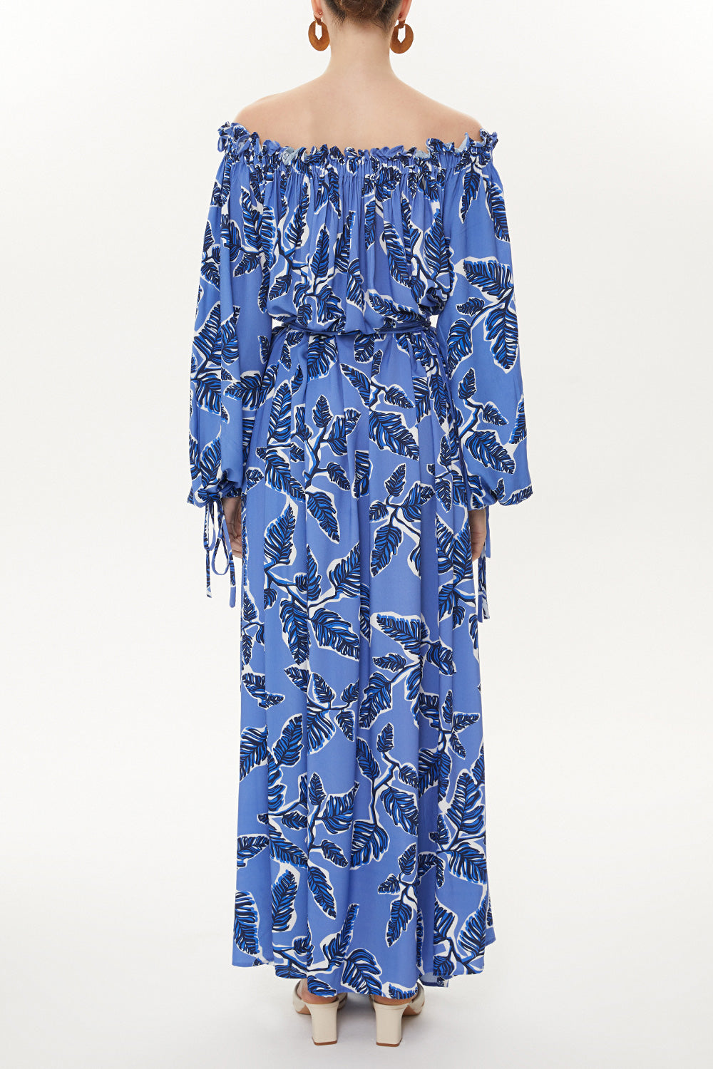 Mavi Omuz ve bilekleri lastikli bol kesim elbise 93379