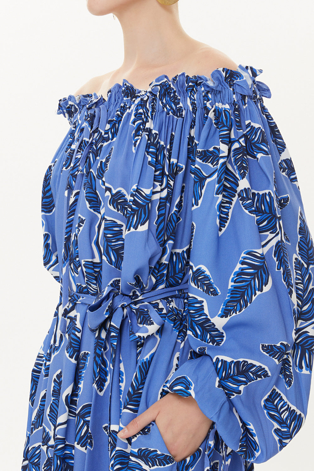 Mavi Omuz ve bilekleri lastikli bol kesim elbise 93379