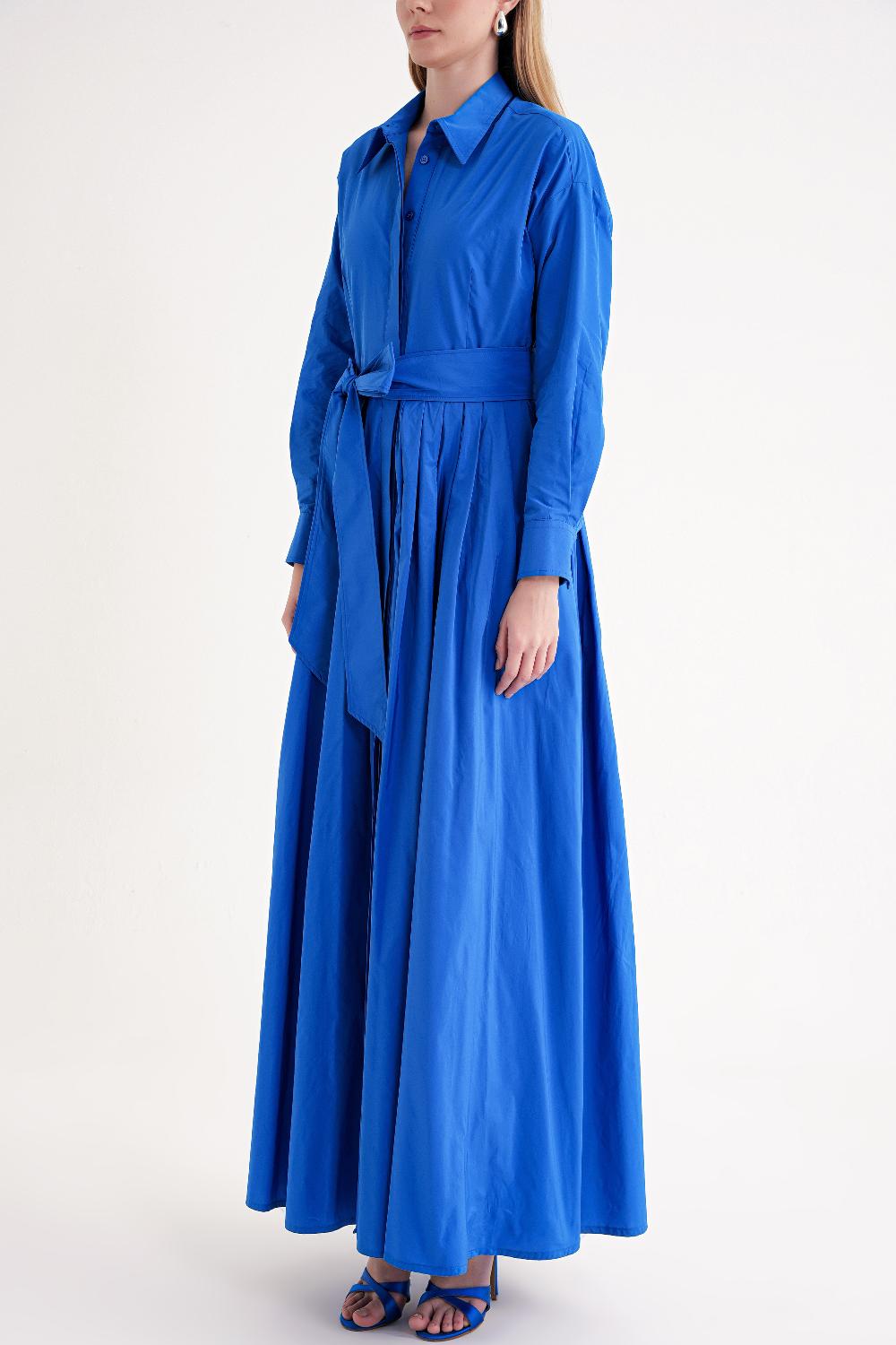 Mavi Pile detaylı uzun gömlek elbise 94575
