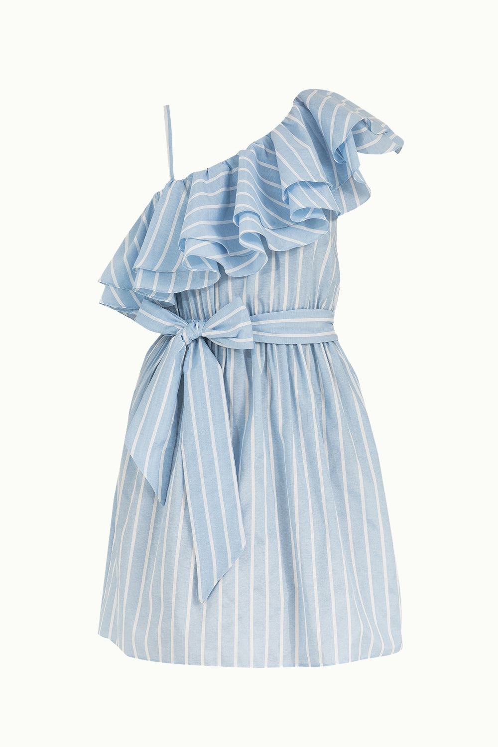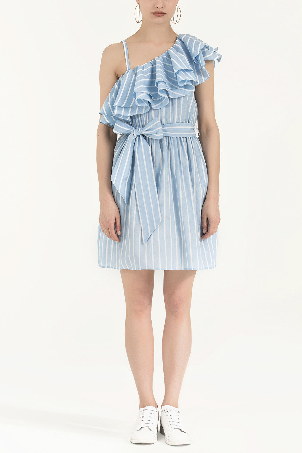 Mavi Tek omuz volanlı mini elbise 92345