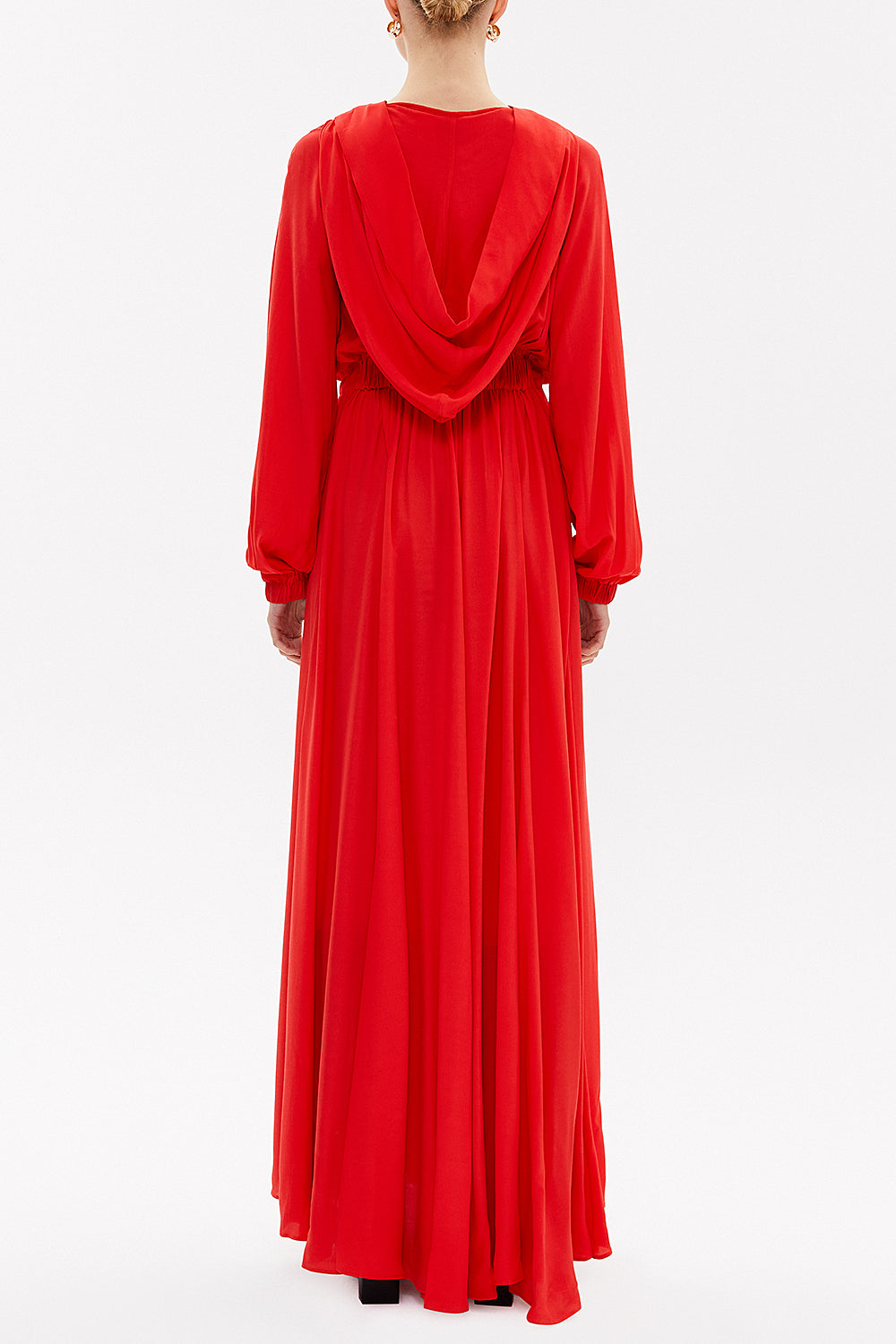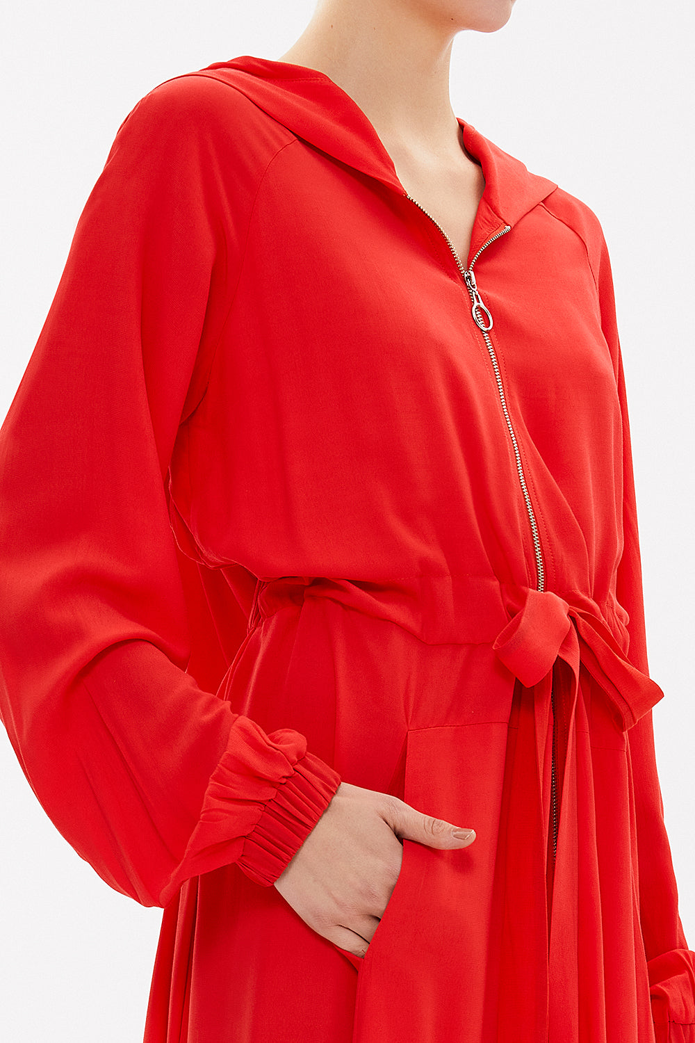 Mercan Fermuarlı kapüşonlu uzun elbise 93209