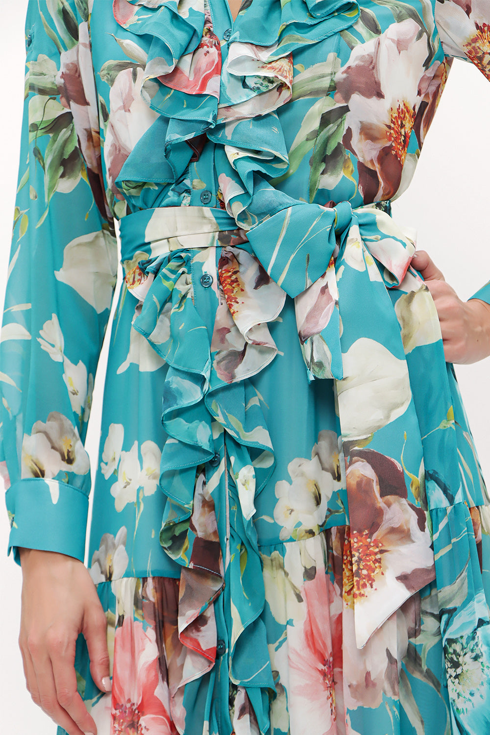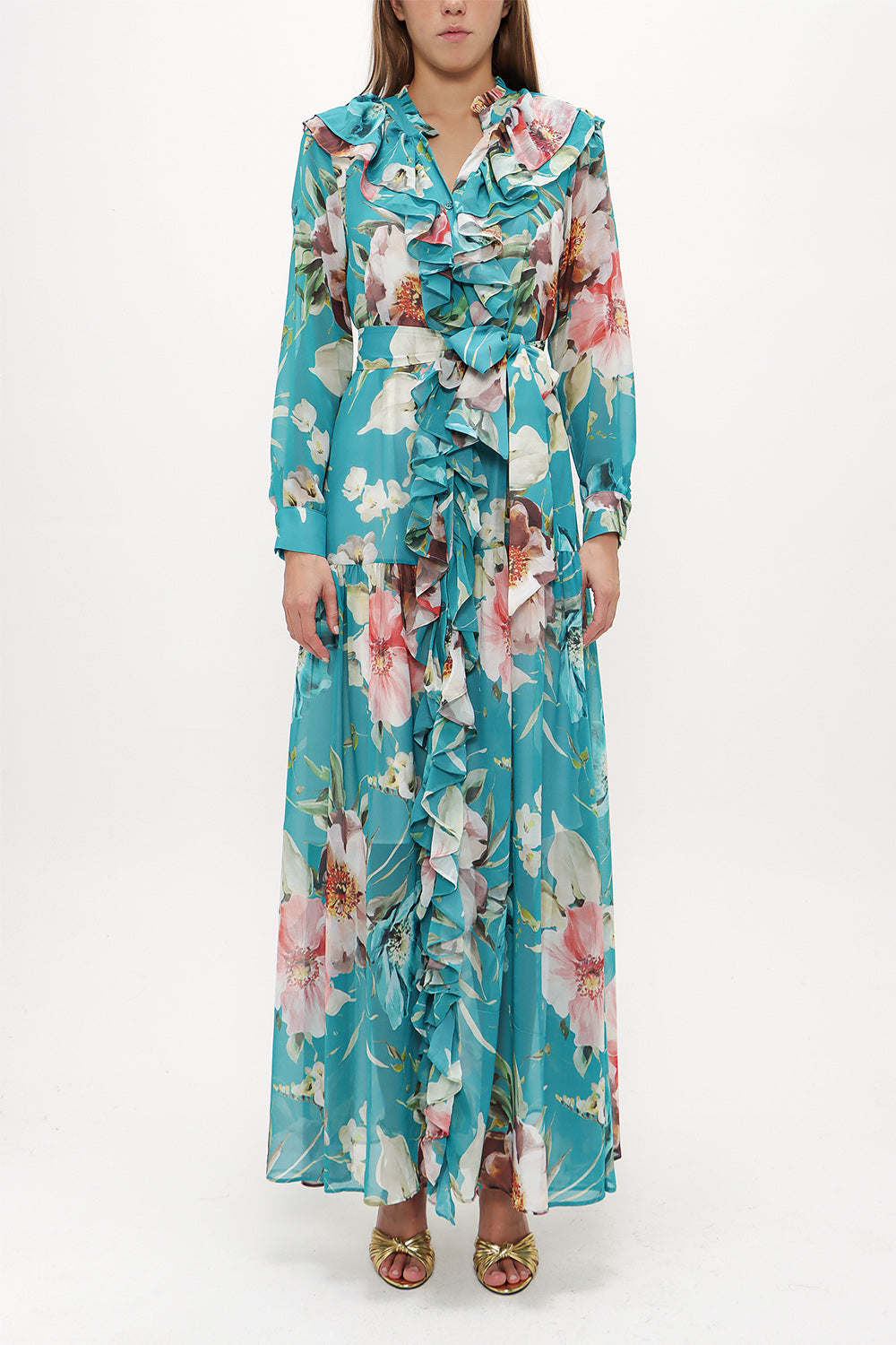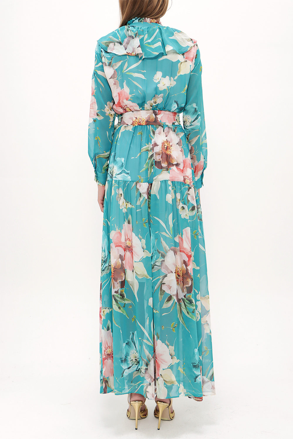 Mint Fırfırlı beli lastikli uzun elbise 93262