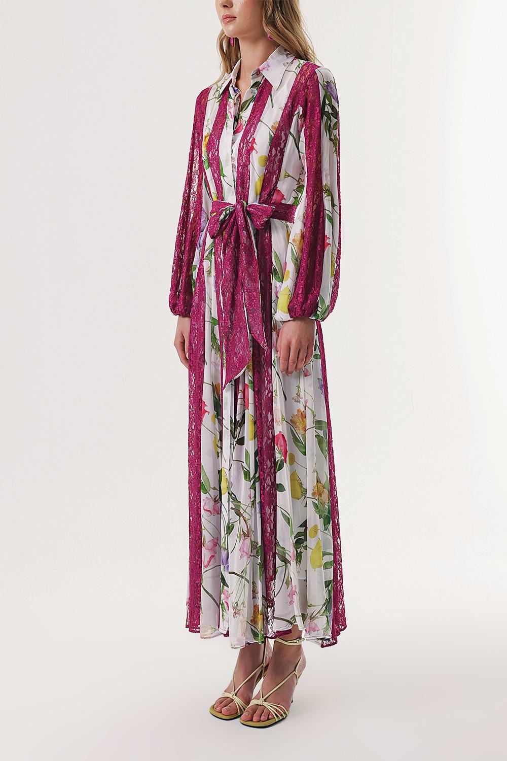Mor Dantel detaylı uzun gömlek elbise 94232