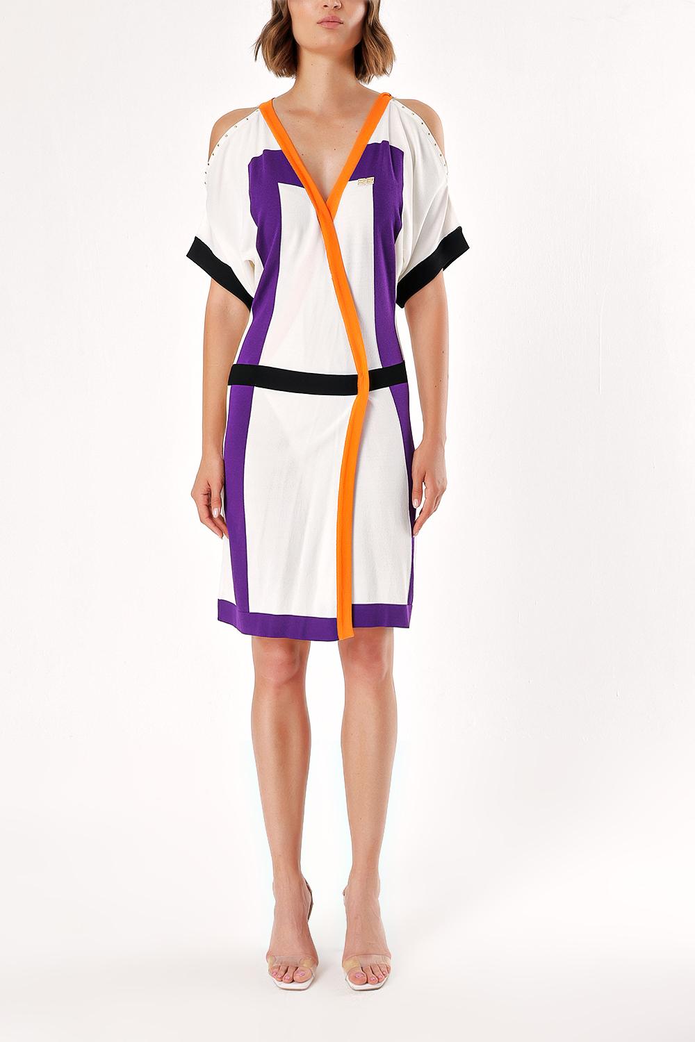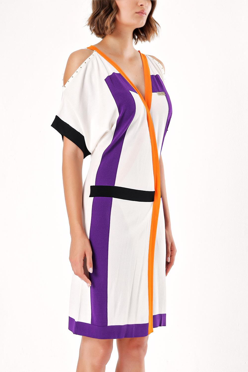 Mor OMUZLARI PENCERELİ TRİKO ELBİSE  28076
