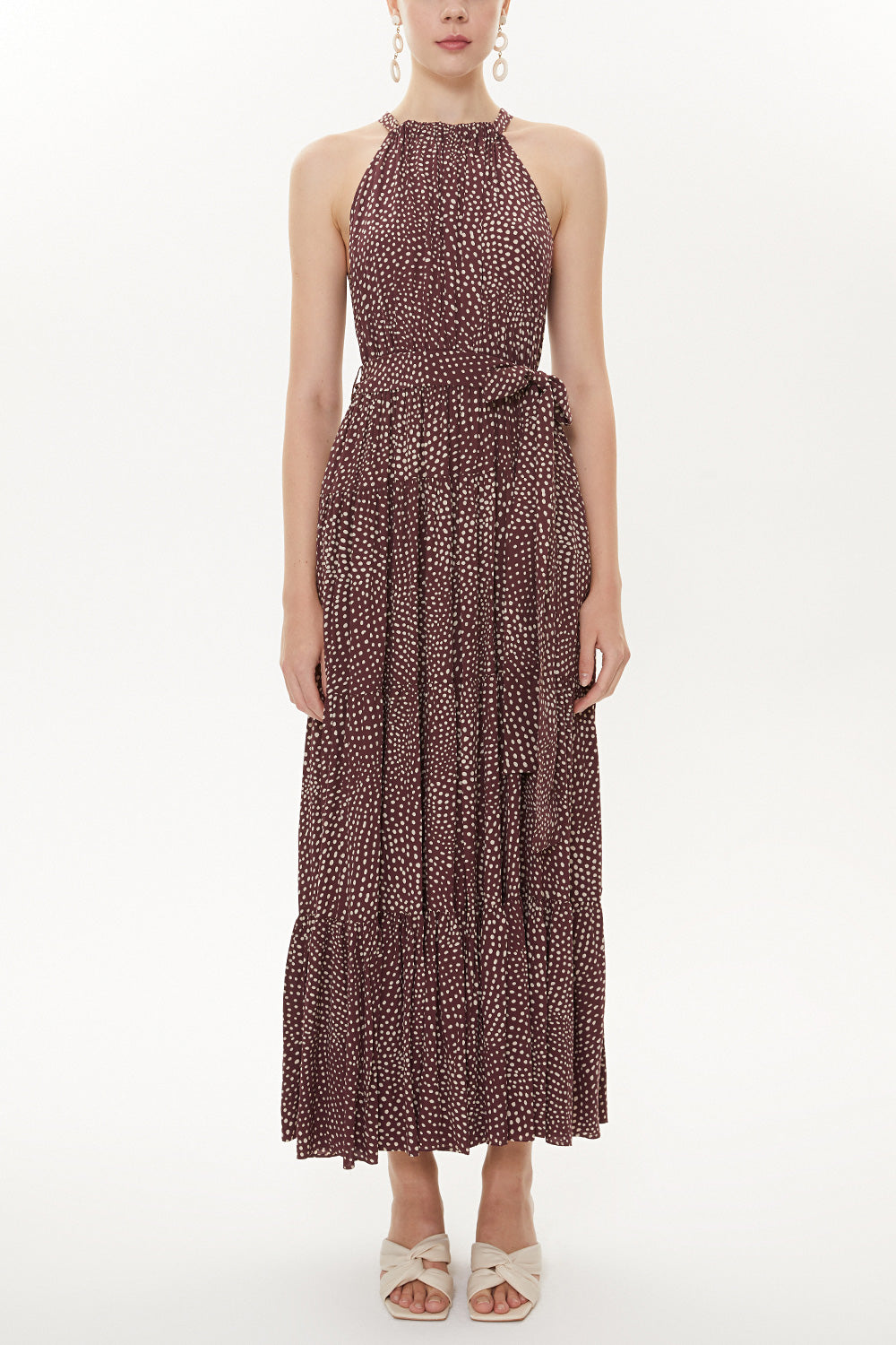 Mürdüm Askılı sıfır kol bol kesim elbise 93470