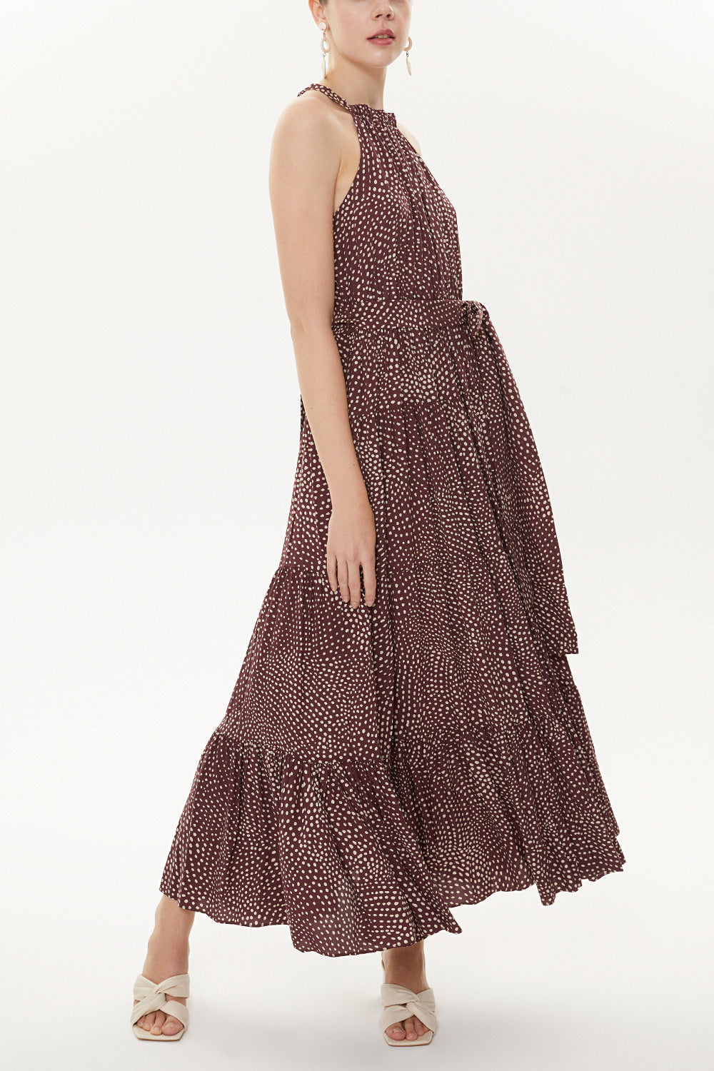 Mürdüm Askılı sıfır kol bol kesim elbise 93470