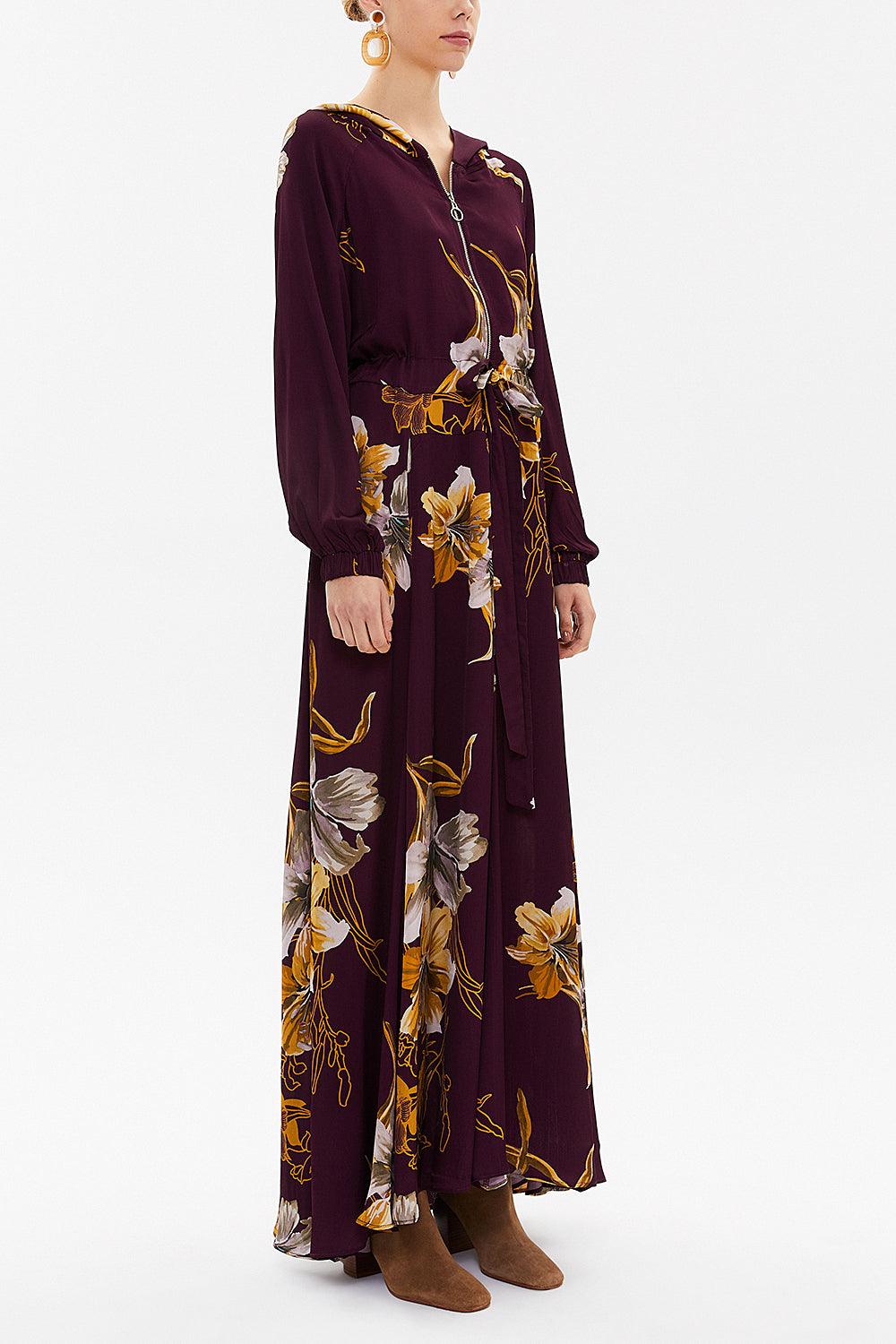 Mürdüm Fermuarlı kapüşonlu uzun elbise 93209