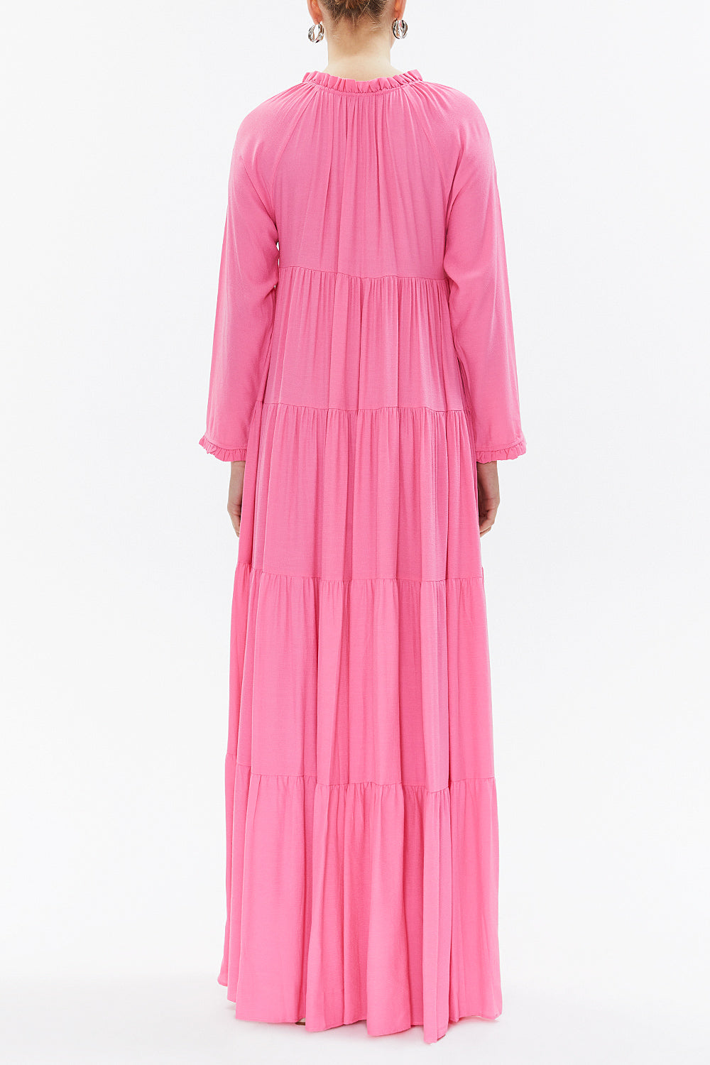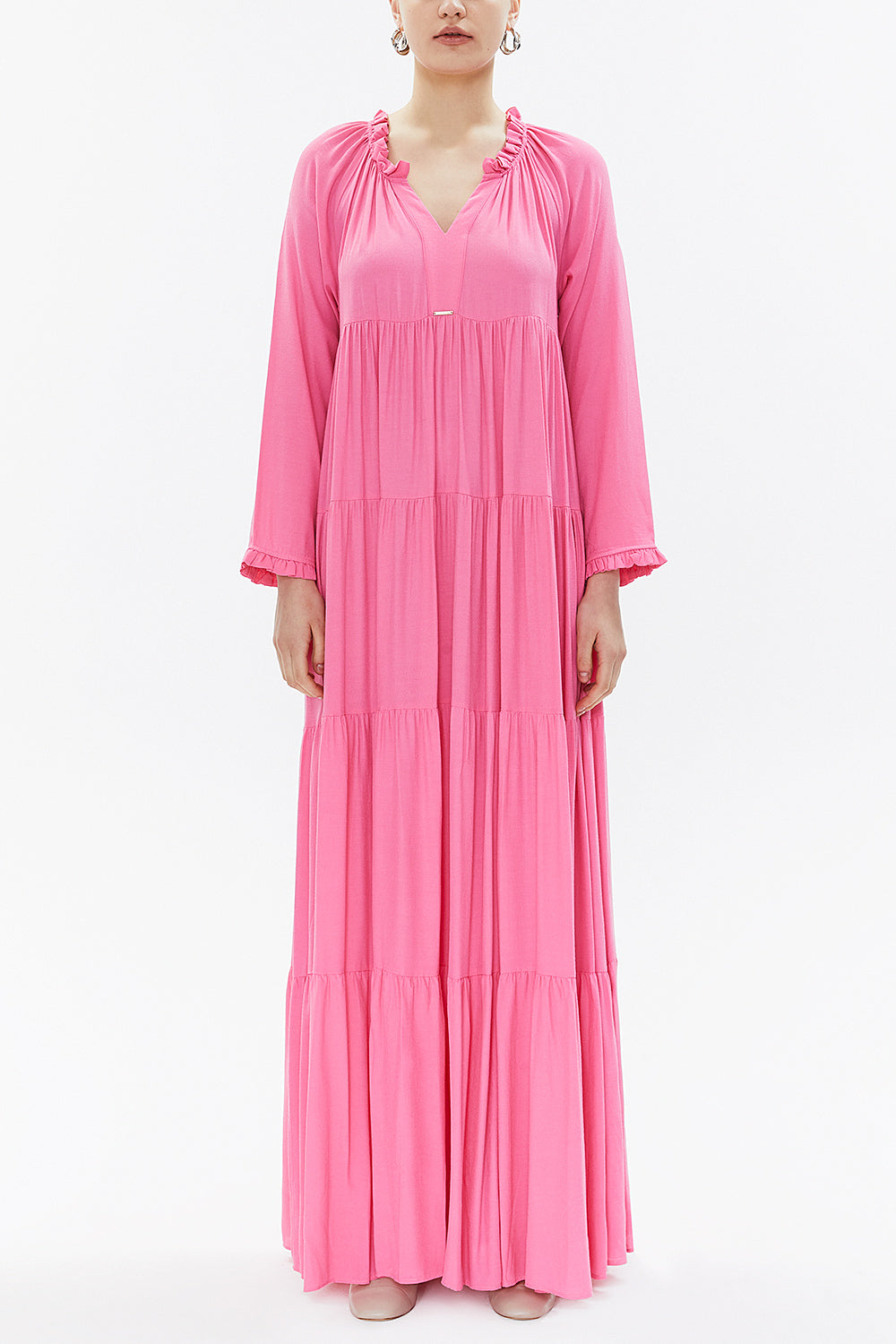 Pembe Bol kesim büzgülü uzun elbise 93332