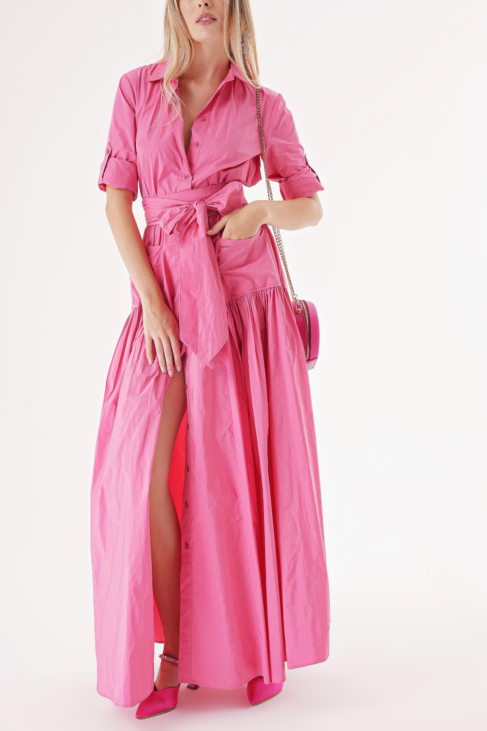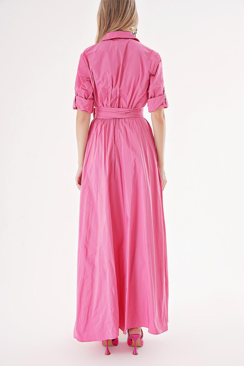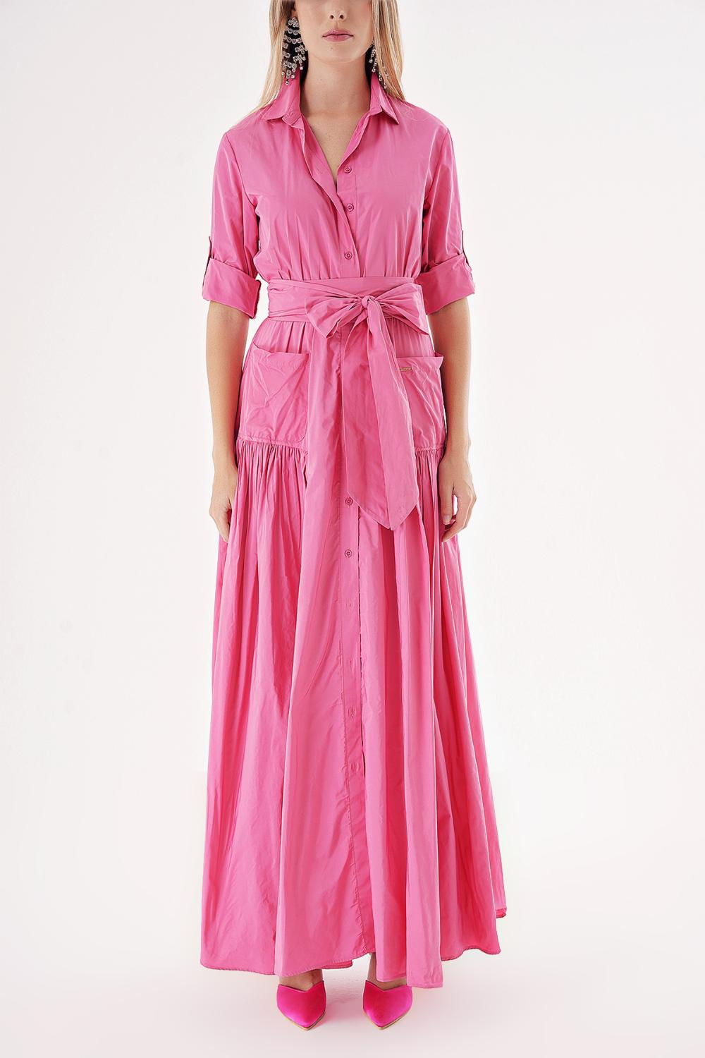 Pembe Büzgülü uzun tafta gömlek elbise 94198
