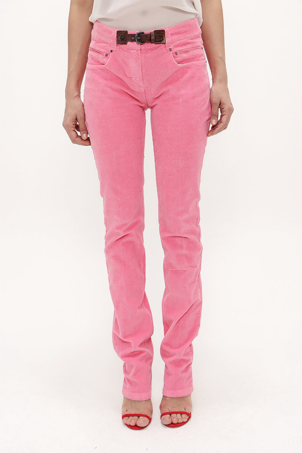 Pembe Deri aksesuarlı kadife pantolon 40754