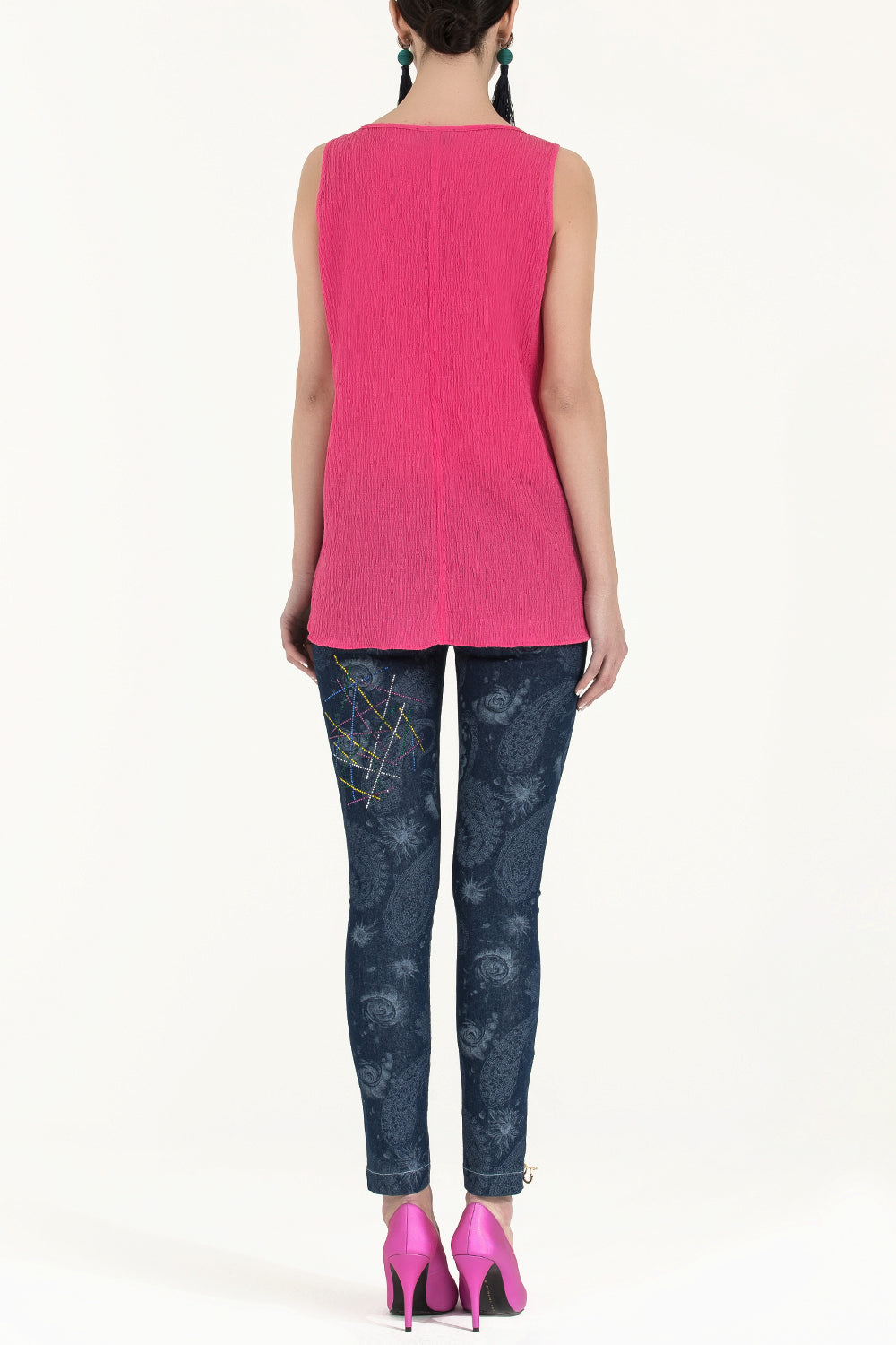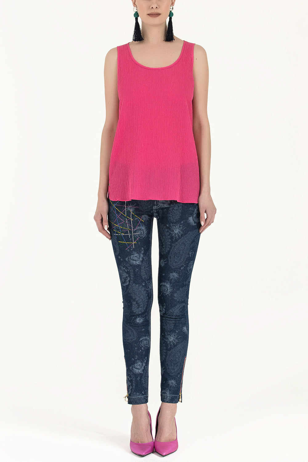 Pembe Desenli bol kesim kolsuz bluz 19692