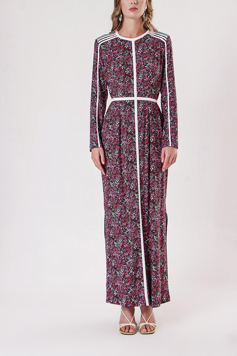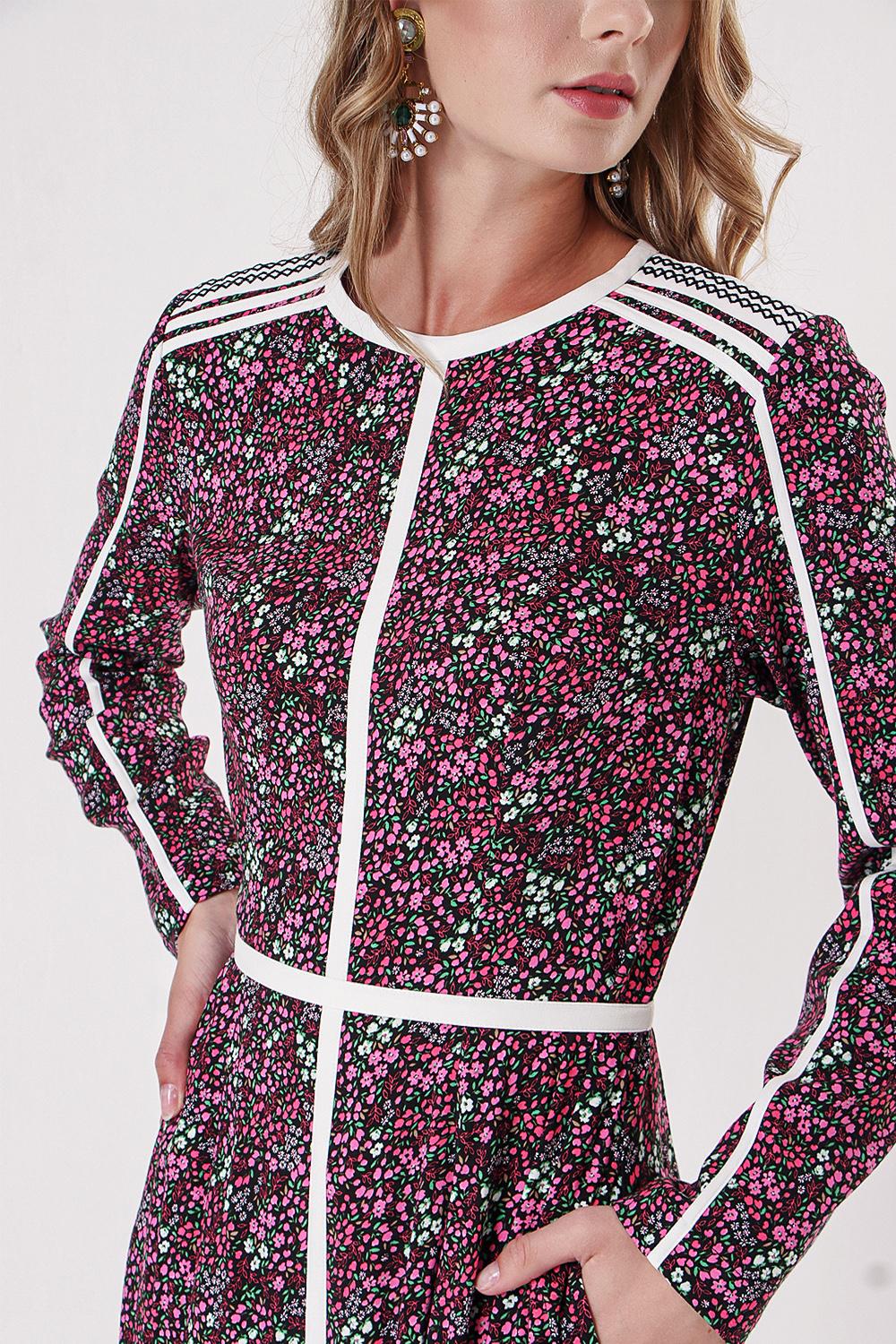 Pembe Kontrast biye detaylı uzun elbise 94110