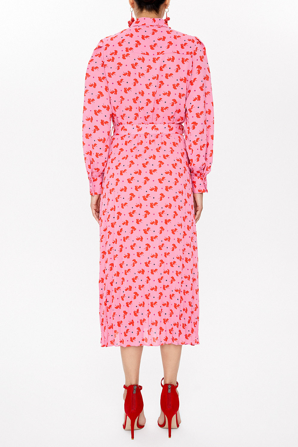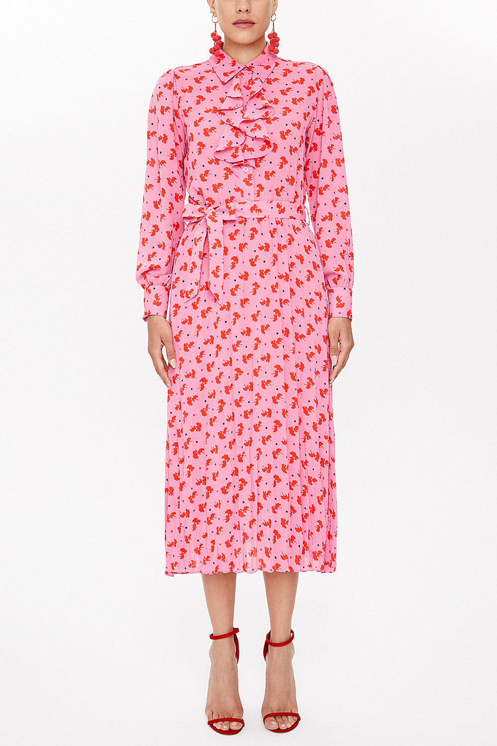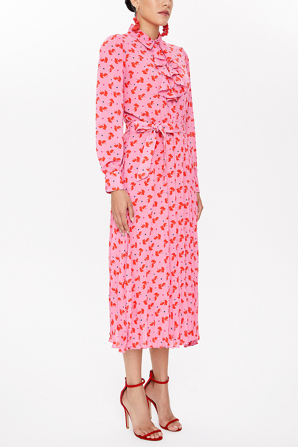Pembe Önü fırfırlı midi elbise 93076