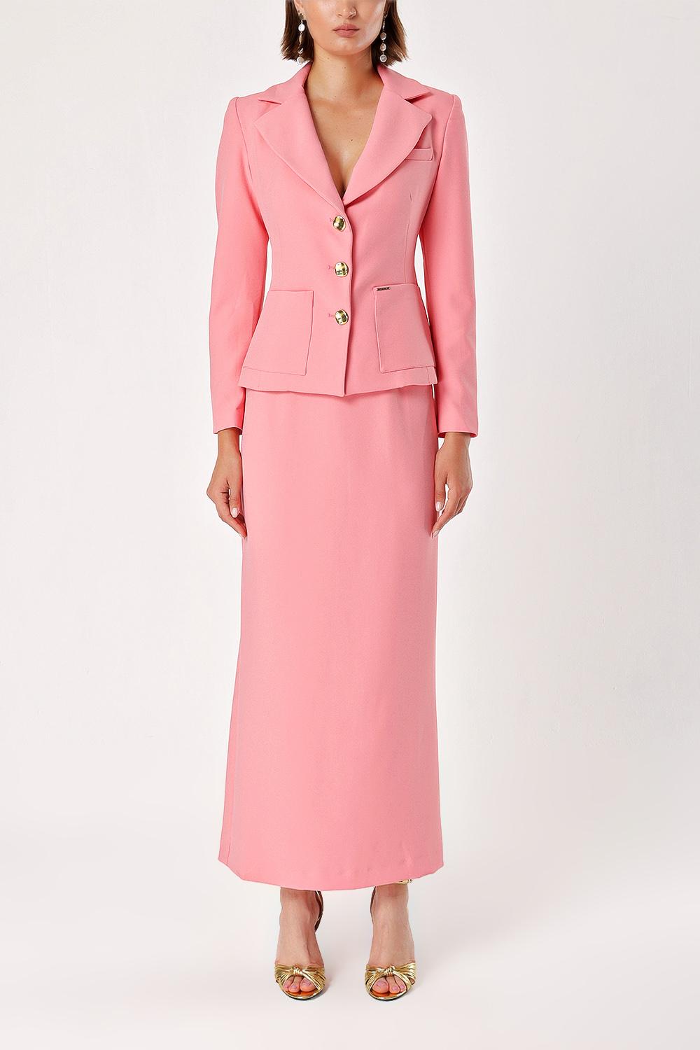 Pembe Uzun etek ve blazer ceketli ikili takım 12281