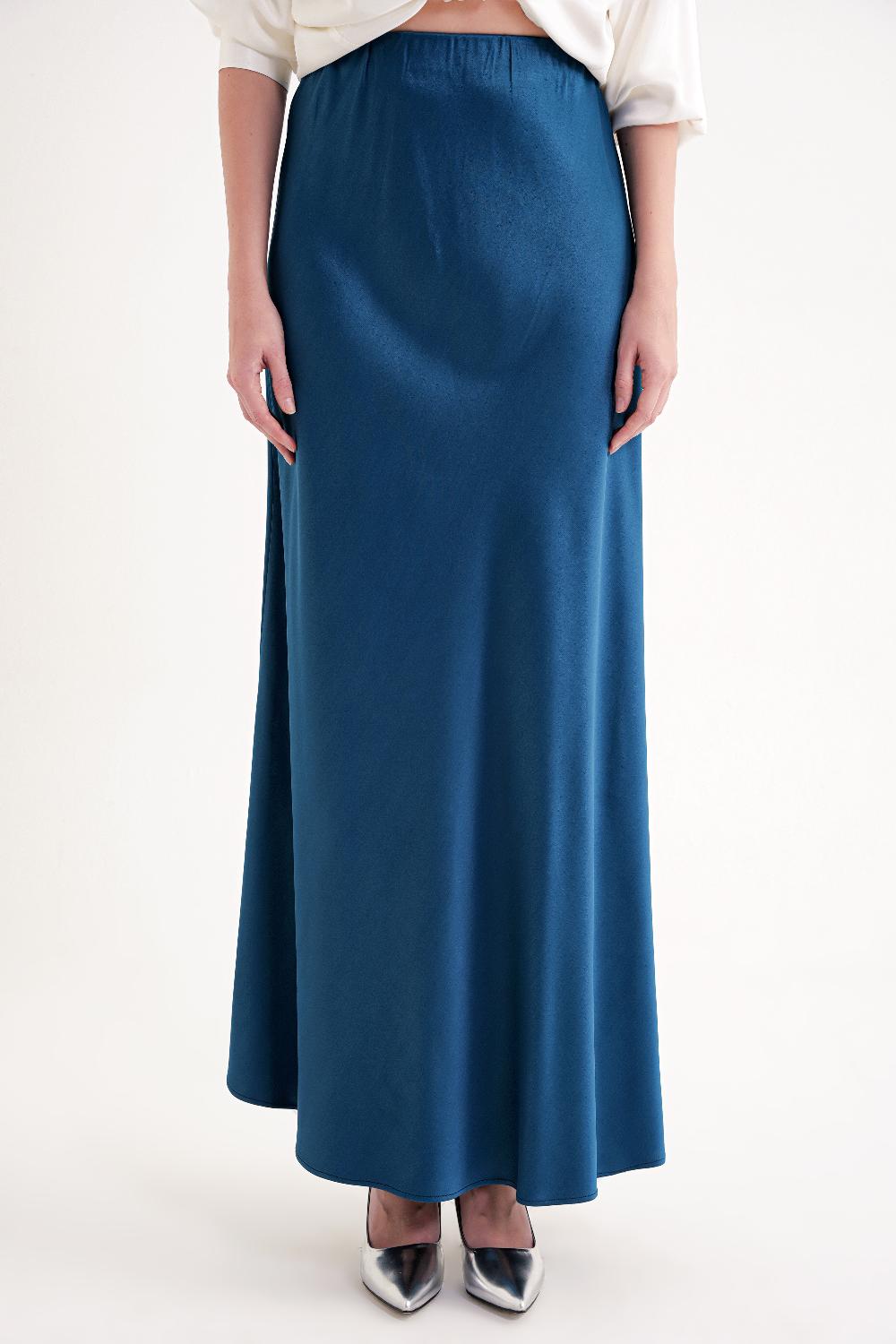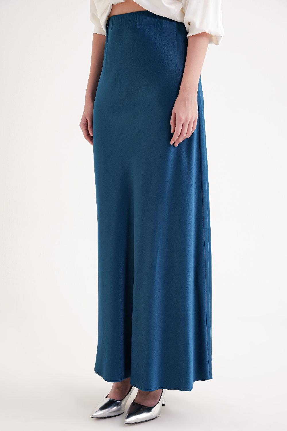 Petrol Beli lastikli uzun saten etek 81331