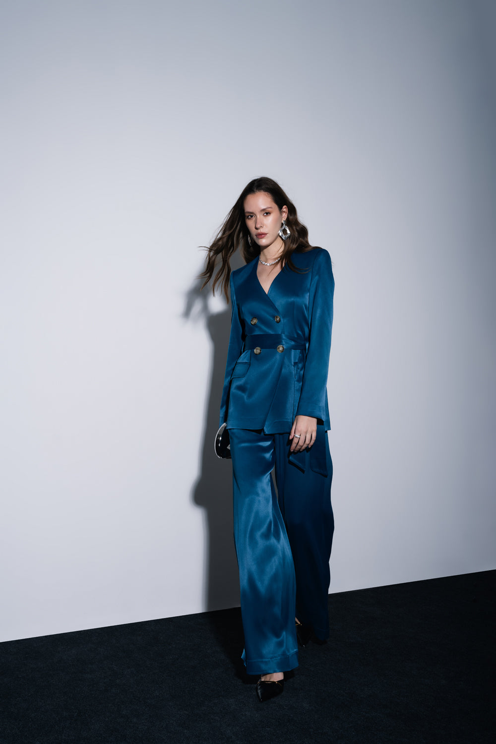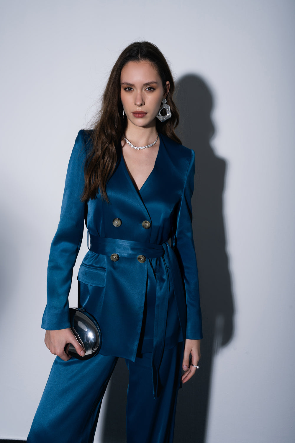 Petrol Vatkalı ve kemerli blazer 61187