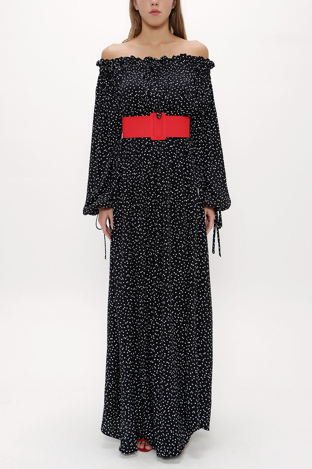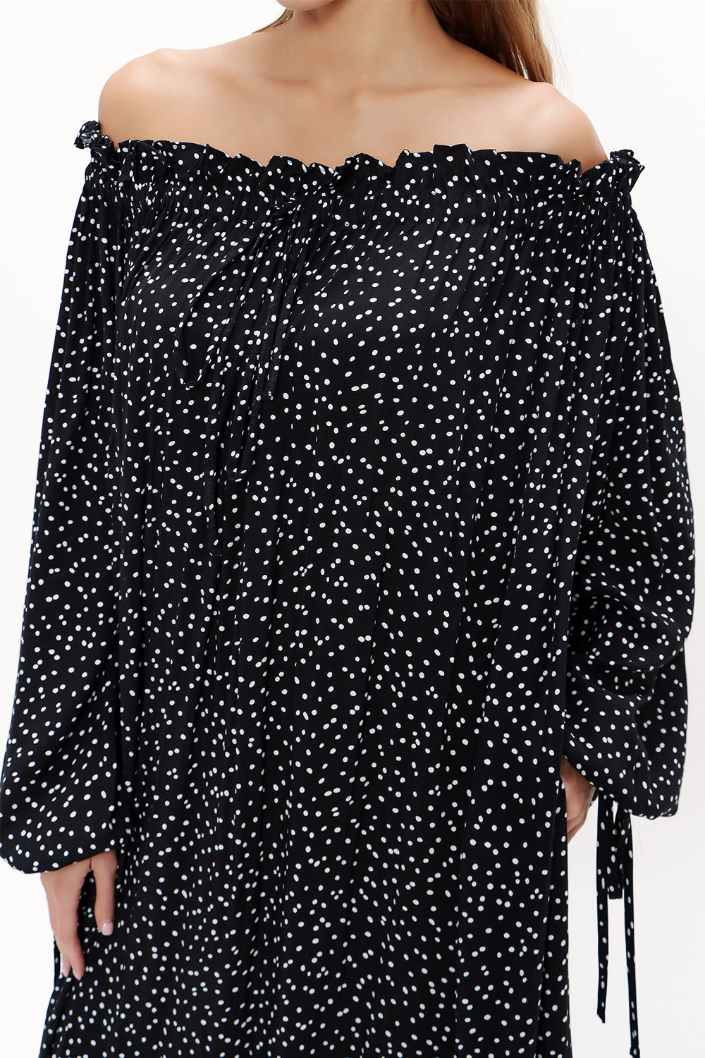 Puantiyeli Omuz ve bilekleri lastikli bol kesim elbise 93379