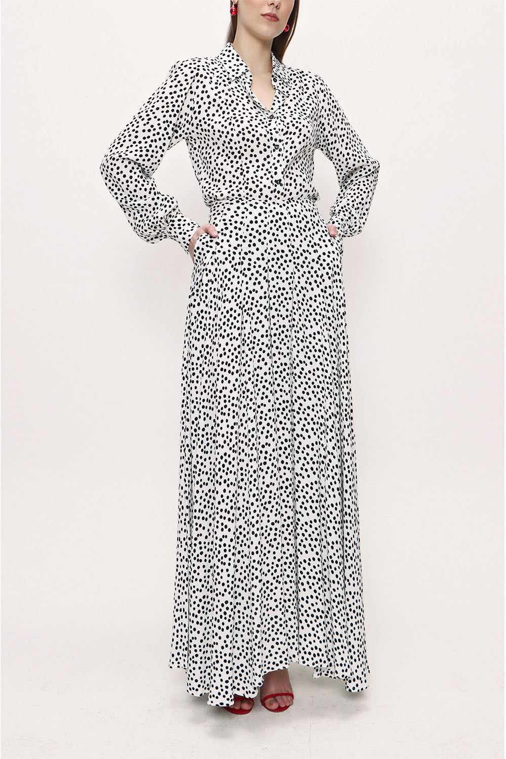 Model Bilgisi: Ürün Bedeni: S / Boy:177, Gögüs:83, Bel:63, Kalça:90 Beden:40