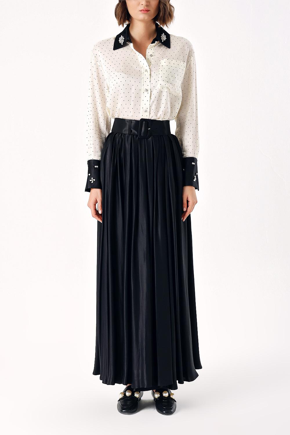 Puantiyeli Taş işlemeli gömlek ve lastikli etek takım 12331