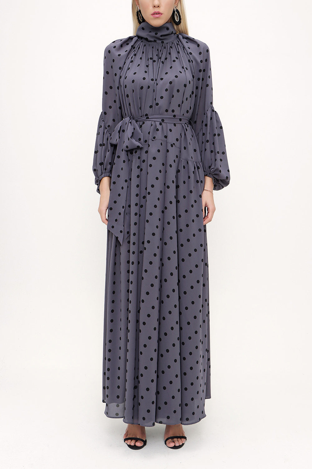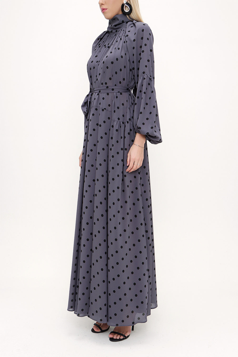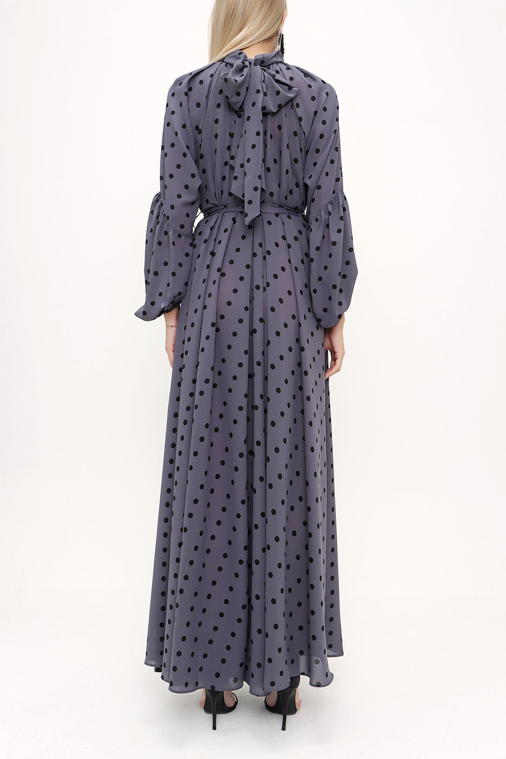 Puantiyeli Yakası bağlamalı uzun elbise 93830
