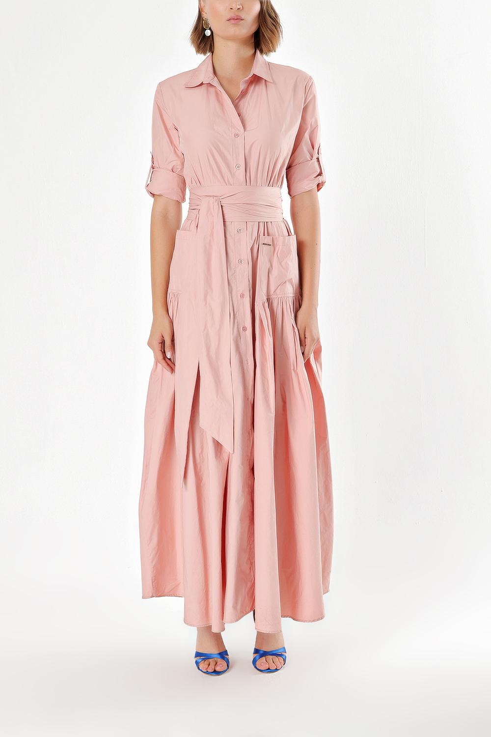Pudra Büzgülü uzun tafta gömlek elbise 94198