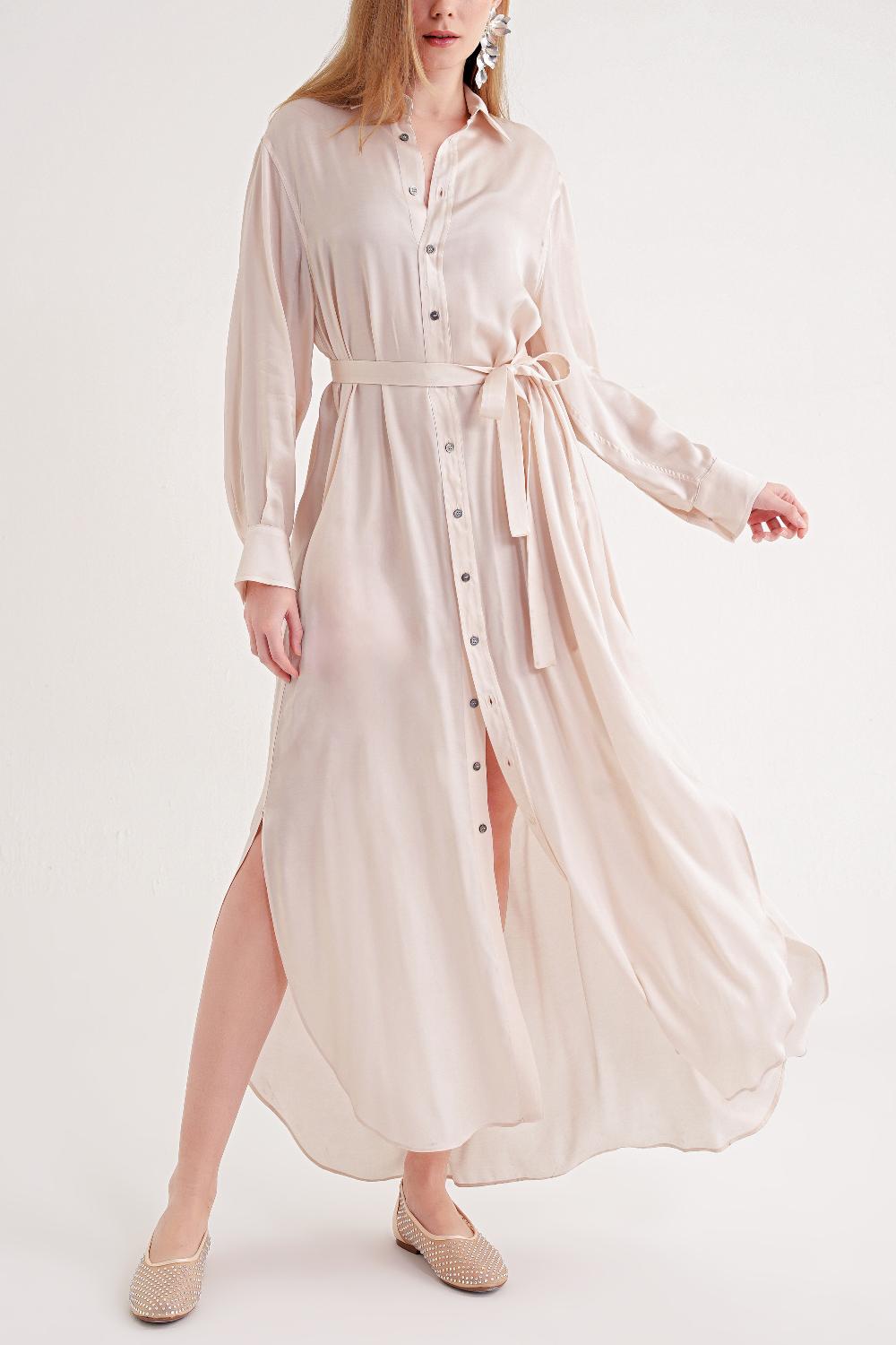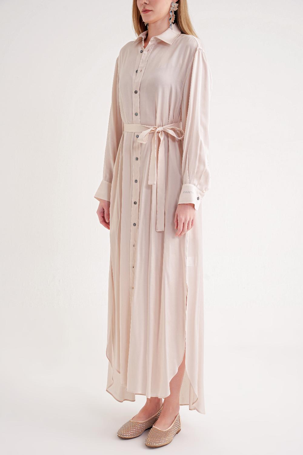 Pudra Kemerli rahat uzun gömlek elbise 94555