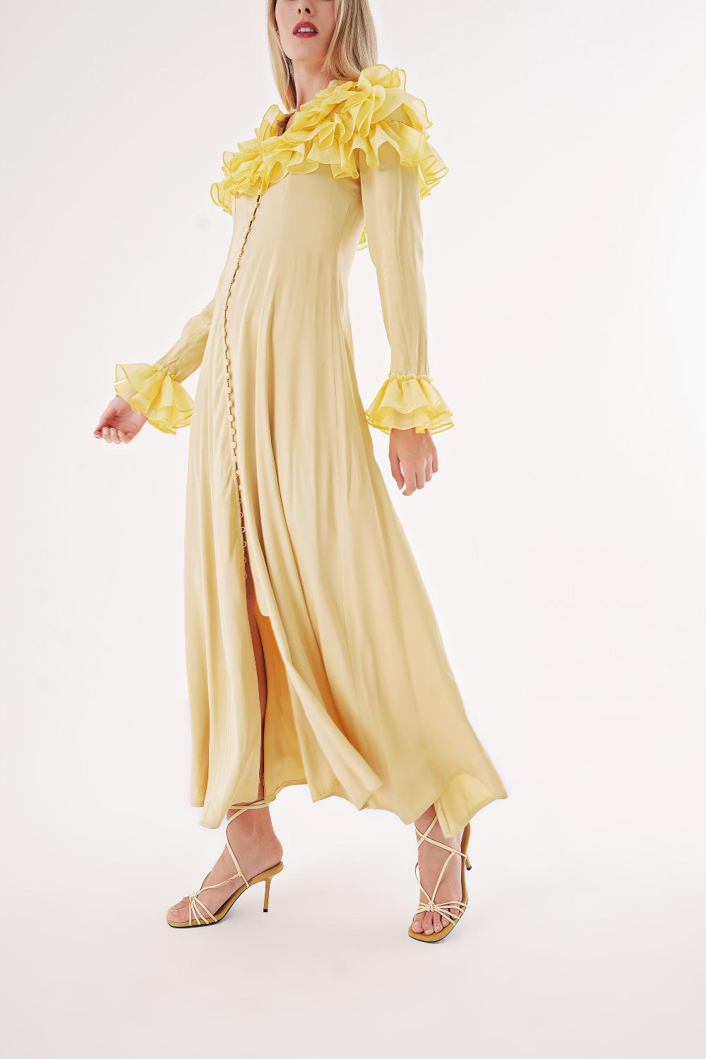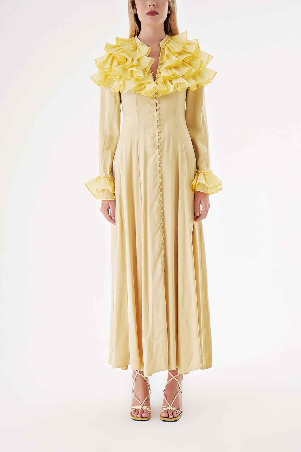 Sarı Hakim yaka fırfır detaylı gömlek elbise 94465