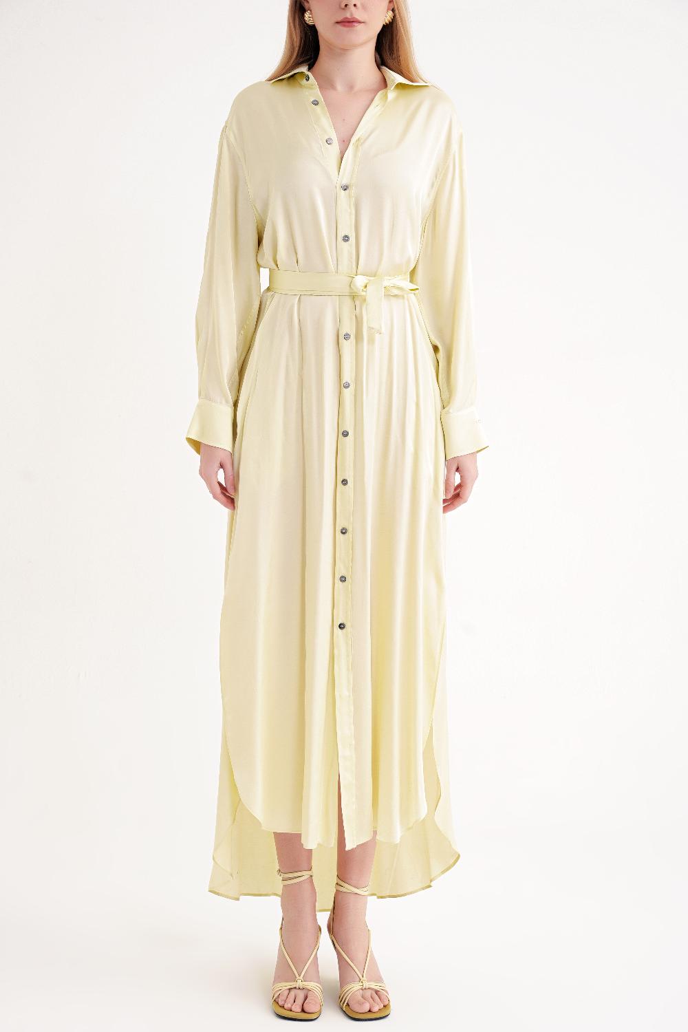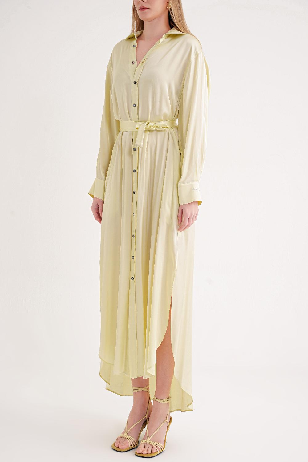 Sarı Kemerli rahat uzun gömlek elbise 94555