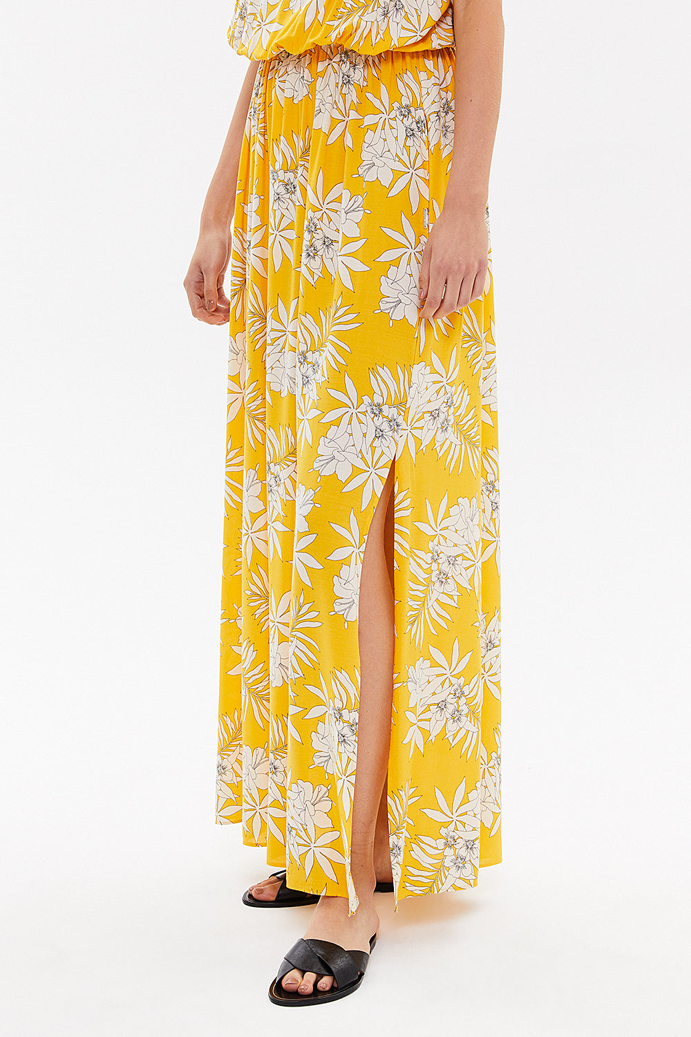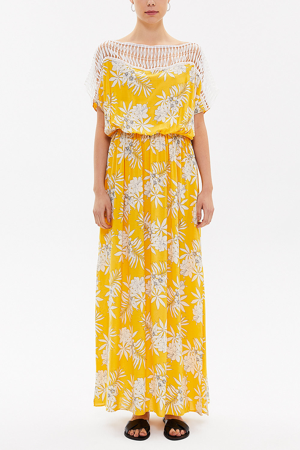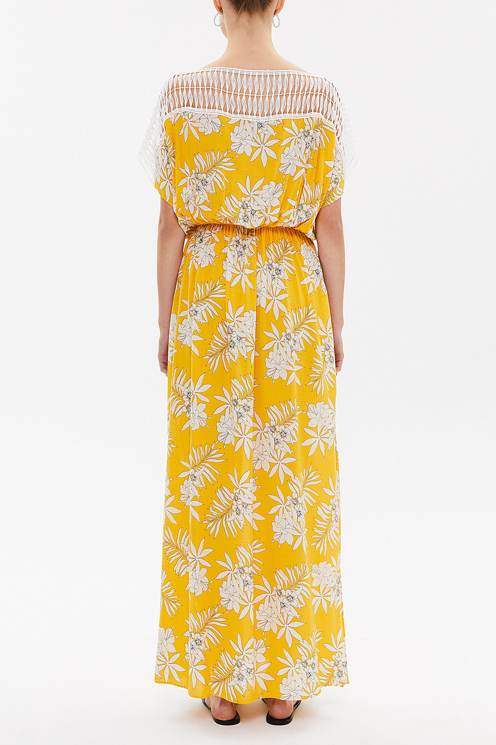 Sarı Yakası dantelli kuşaklı uzun elbise 93205