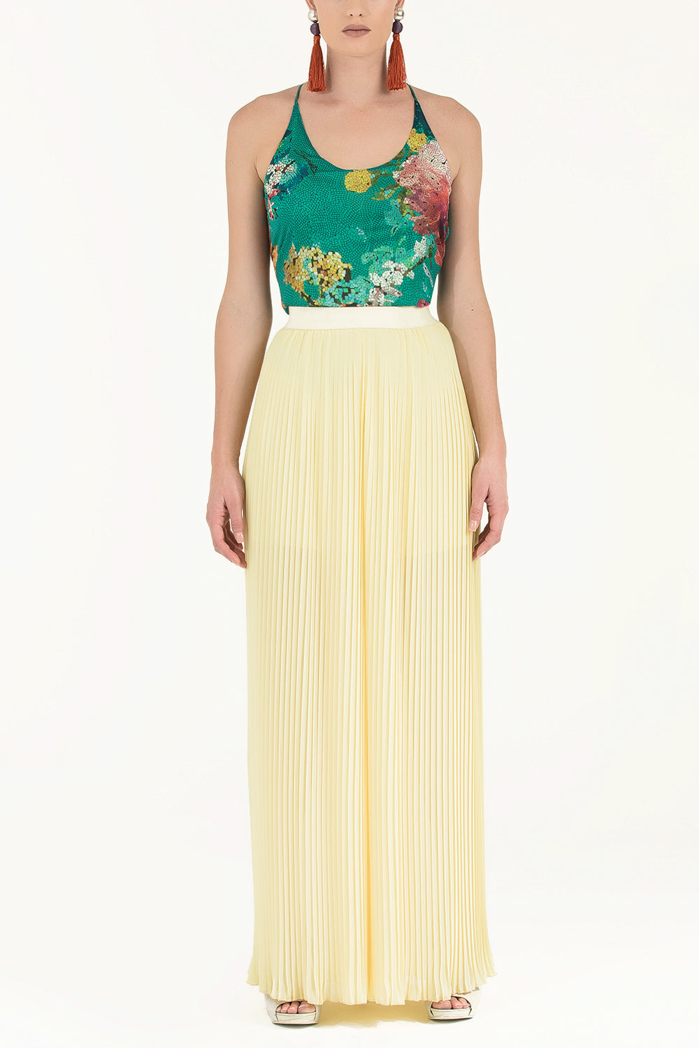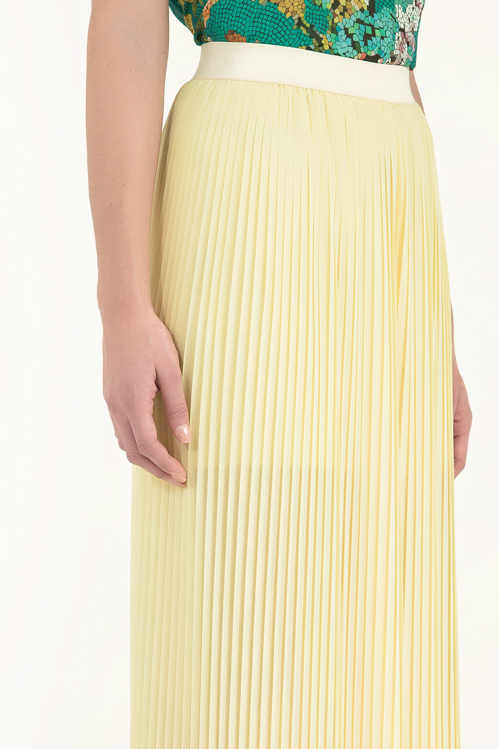 Sarı Yüksek bel piliseli şifon pantolon 41299